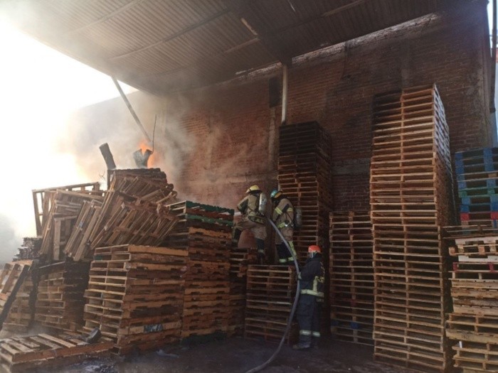 Combatientes de la Unidad Estatal de Protección Civil y Bomberos de Jalisco, así como brigadistas municipales, combatieron un incendio en una fábrica de tarimas en la colonia La Duraznera en San Pedro Tlaquepaque.Alrededor de las 7:00 horas se reportó un incendio en una empresa ubicada en el cruce de carretera a Chapala y Periférico.Al llegar, los bomberos observaron que era una fábrica de tarimas, por lo que comenzaron a extinguir el fuego.El área afectada fue de 20 por 20 metros, ya fue controlada y no reportan personas lesionadas. AH