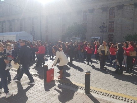 Vestidos de rojo con negro, un centenar de trabajadores de base del Poder Judicial como notificadores, actuarios y de servicios administrativos, bloquearon la circulación de avenida Hidalgo, afuera del Supremo Tribunal de Justicia de Jalisco, para exigir un aumento de salario y que se les respeten las prestaciones que tenían en diciembre.El presidente del Tribunal recibió a los empleados afiliados al Nuevo Sindicato Independiente del Poder Judicial a través de una comisión representadas por Javier Peralta. Éste comentó a las trabajadoras sobre los acuerdos que se lograron con las autoridades entre los cuales están que se respetarán las prestaciones y “se iba a sacar una nómina complementaria donde se devolvía precisamente lo que nos habían quitado de más del Impuesto Sobre la Renta”, a lo que los trabajadores dijeron que no estaban de acuerdo.“Nos están ofreciendo el cuatro por ciento de incremento salarial, entonces estamos pidiendo por lo menos lo de la inflación, el 16 por ciento” comentaron Javier Peralta e Iris García, quienes laboran como auxiliar administrativo.Hace tres semanas, de manera unánime, integrantes del Pleno del Supremo Tribunal de Justicia del Estado de Jalisco, y en línea con las medidas de austeridad de la Suprema Corte acordaron la reducción del salario de los magistrados en un 25 por ciento, así como la reducción entre cinco y 17 por ciento, para los funcionarios de las distintas áreas administrativas, de acuerdo al cargo.GC