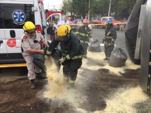 Un camión pesado chocó la mañana de este miércoles contra un vagón del Tren Ligero en la estación Urdaneta, informó Protección Civil Jalisco.El segundo oficial, Carlos Cantero detalló que hasta el momento sólo hay cinco mujeres lesionadas, dos de ellas fueron trasladadas a un hospital para recibir atención médica.El comandante detalló que debido al derrame de diésel del tráiler, una patrulla derrapó y se impactó contra una ambulancia, sin embargo, no hubo personas heridas ni daños mayores.Personal de la corporación aplicó arena en la vía pública debido al derrame de combustible.Además, la circulación de Sur a Norte de avenida Federalismo se encuentra cerrada, provocando caos vial en la zona.GC