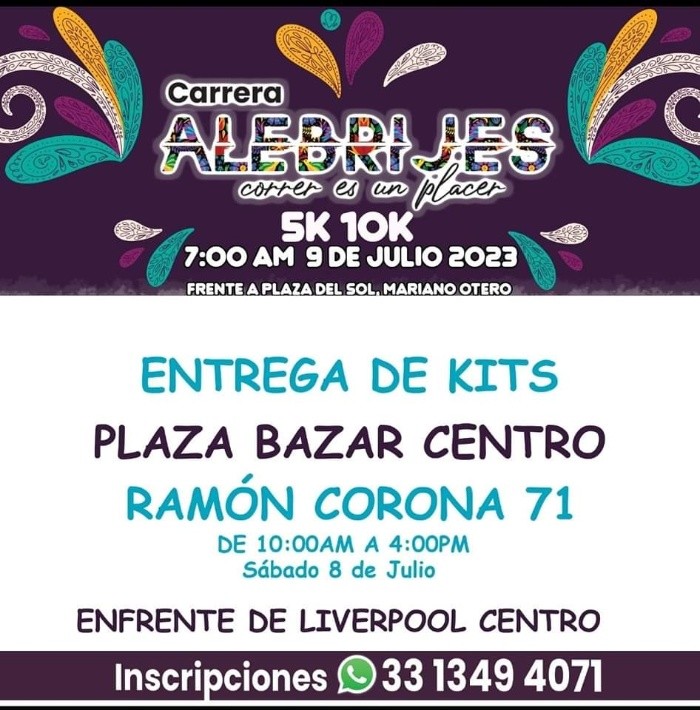 Con motivo del desarrollo de la Carrera Alebrijes, mañana domingo 9 de julio, las rutas del transporte público que pasan sobre la avenida Mariano Otero modificarán su recorrido hasta el término de la competencia.En total, 18 rutas del transporte público de Guadalajara y Zapopan se verán afectadas durante el proceso de la competencia, que comenzará en punto de las 07:00 horas y se espera haga todo su recorrido desde Plaza del Sol, en dirección hacia el norte hasta topar con la calle Tormenta, el retorno será por la misma vialidad. Las rutas de transporte público que detendrán su recorrido antes de cruzar la av. Mariano Otero, únicamente en lo que pasan los corredores, serán:C104 Circuito, C123-V2, C125 Valle de los Emperadores, C125-V2, C128A-V2, C130, C49-V1, C49-V2, C51-V1, C51-V2, T01 18 de Marzo, T04B-1, T04B-3, T04B-4, T10, T10-C01, T10-C02, y T11B.La Carrera Alebrijes planea ser un circuito de 5 y 10 kilómetros, las inscripciones aún pueden realizarse por medio del contacto: 33 1349 4071El día de hoy harán entrega de los kits a todos los participantes en la Plaza Bazar Centro, sobre la calle Ramón Corona 71, desde las 10:00 y hasta las 16:00 horas.Por su parte, la Secretaría de Transporte invita a las y los usuarios del transporte público a tomar previsiones en sus recorridos matutinos para el día de mañana a fin de evitar retrasos y accidentes por causa de la carrera.OF