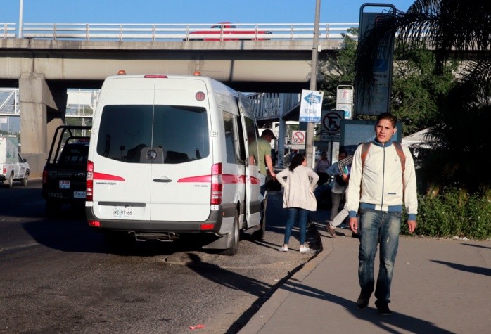 Formados uno tras de otro puede verse como varios vehículos se colocan en el camellón de Periférico Sur, a la salida de la estación del Tren Ligero para prestar su servicio como transporte colectivo.Aprovechan la hora pico de la mañana para ofrecer viajes con destino al ITESO, el corporativo Herbalife y a Las Fuentes por un pago de 10 a 15 pesos según el destino. Desde un Tsuru descuidado, con placas del estado de Oaxaca hasta camionetas tipo Van y de modelo corporativo, suben por viaje de entre cinco a 10 personas, dependiendo del vehículo. Para atraer a la gente, algunos de los choferes se colocan a un costado del auto y comienzan a gritar los destinos, otros tantos hacen un sondeo entre las personas que esperan en la parada del autobús, así hasta que consiguen ocupar todo el vehículo para partir. En una hora pueden hacer hasta cinco viajes.Desde hace al menos cinco meses que este tipo de práctica se lleva a cabo en la zona, según dijo Abraham, un joven que esperaba el camión para ir a su trabajo, quien agregó que suelen ser muy recurridos por las personas que tienen prisa para ir a la escuela o su trabajo. "Salen corriendo del tren y se suben a los carros porque ya saben que ahí están", dijo."Es que por tres pesos más si conviene subirse, porque el camión cuesta siete y va muy lleno o no da la parada, en el carro por lo menos te vas cómodo y llegas más rápido", dijo otra de las personas que esperaba en la parada de autobús."Algunos van de paso, como que trabajan para el rumbo y aprovechan para subir gente que vaya para allá y así se ganan unos pesos, otros se quedan ahí desde tempranito y hacen varios viajes al día. Para todos hay", dijo el checador de la ruta 380. Luego de un recorrido realizado por este medio de comunicación a la zona referida, en el que se constató la operación de este tipo de transporte que es irregular, se encontró con la presencia de al menos seis agentes viales que en ningún momento pidieron a los conductores de estos vehículos que se retiraran de la zona, a pesar de estacionarse junto al camellón para atraer el pasaje.Al respecto, la Secretaría de Movilidad (Semov), señaló que no tenían identificado este punto como uno en los que se lleva a cabo la práctica del transporte colectivo, misma que se encuentra prohibida por el Reglamento de la Ley de Movilidad y Transporte del Estado de Jalisco.Por este motivo, la Semov señaló que ya se llevan a cabo operativos específicos para acabar con esta actividad, identificada principalmente en la zona de Plaza Patria, Revolución y Carretera a Chapala y que, inclusive, varios vehículos ya han sido decomisados y llevados al corralón, sin precisar la cifra. La operación de transporte irregular no es la única deficiencia en la zona de Periférico Sur y Colón, el acoso callejero hacia las mujeres y la inseguridad son otros de los padecimientos que se viven diariamente en este punto del municipio de Tlaquepaque donde una menor de edad fue ultrajada por un sujeto con navaja mientras pretendía cruzar por debajo del puente que conecta la avenida Colón con Camino Real a Colima. Además, el pasado 21 de marzo un policía vial fuera agredido a golpes por intentar poner orden al tráfico que ocasionan los camiones que se colocan en doble fila en este lugar.