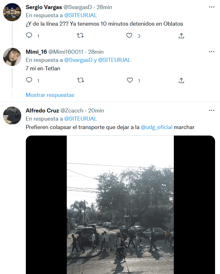 Previo a la megamarcha que convocó la Universidad de Guadalajara (UdeG) para este miércoles en el cuadro principal de la Zona Metropolitana de Guadalajara (ZMG), el Sistema de Tren Eléctrico Urbano (Siteur) informó que no hay servicio en la Línea 1 y Línea 3 del Tren Ligero. A través de redes sociales, el Siteur detalló, aproximadamente a las 9:43, que debido al "bloqueo de un tren, derivado de una falla eléctrica en la estación Plaza de la Bandera, se suspende el servicio de la Línea 3".Minutos después, el Siteur también mencionó que la Línea 1 del Tren Ligero suspendía su servicio, debido a una camioneta particular que ingresó a las vías, en el crucero de la estación Santa Filomena.Aunque no ha confirmado en sus redes la suspensión del servicio en la Línea 2, usuarios han comentado en estas mismas publicaciones que los trenes están parados desde hace minutos.Además, el Macrobús también presenta retrasos, aunque Siteur aclaró que se debe al tráfico que se genera por los cierres viales derivados de la manifestación. Después poco más de 30 minutos de suspensión del servicio, a las 10:12 Siteur informó que la Línea 1 y Línea 2 del Tren Ligero están funcionando nuevamente.GC