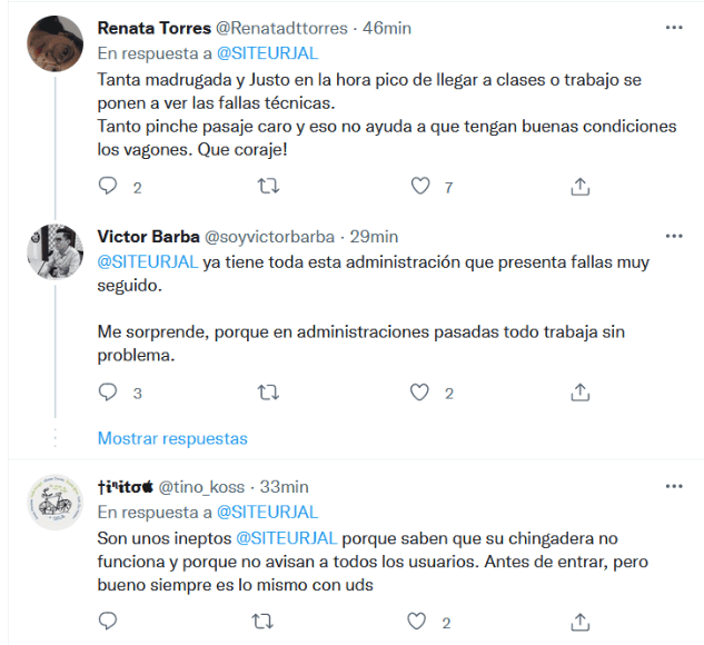 La mañana de este miércoles, el Servicio de Tren Eléctrico Urbano (Siteur) informó que se suspendieron los trayectos de la Línea 3 del Tren Ligero, debido a cuestiones técnicas.Sin dar mayor detalle, Siteur aseguró que "en breve se reanuda la circulación", pues personal especializado ya trabaja en el sitio para reparar la falla.Esto ha causado un sinfín de quejas entre usuarios del tren ligero, que acusan no les advirtieron sobre la suspensión del servicio, e incluso ahora están varados dentro de un vagón, esperando que se reanude el trayecto.Las molestias por el retraso han sido tantas, debido a los problemas que los usuarios tendrán por llegar tarde a la escuela o trabajo, que Siteur informó que pueden tramitar un justificante en el Centro de Atención a Pasajeros, en estación Juárez, de lunes a viernes, de 7: 00 a 22:00 horas.Actualización: El servicio ya fue restablecido, informó la dependencia.GC