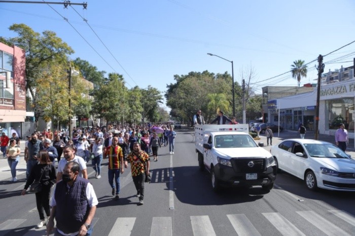 Más de un centenar de alumnos, docentes y personal administrativo se reunió en torno al edificio de la Rectoría General de la Universidad de Guadalajara (UdeG) en la avenida Juárez para marchar con rumbo a Casa Jalisco en la avenida Circunvalación.Esto como protesta ante la comparecencia del ex presidente de la Federación de Estudiantes Universitarios (FEU), Javier Armenta Araiza, así como los estudiantes Iván Cisneros González y José Rojas Umazor, por el presunto delito de despojo con violencia de inmuebles y aguas.La manifestación se llevará a cabo previo a la comparecencia de los universitarios en el penal de Puente Grande, en donde se realizará una audiencia inicial de formulación de imputación ante los delitos señalados, diligencia que penal que podría derivar en el encarcelamiento de los estudiantes.Los presuntos delitos a los que hace referencia la Fiscalía General de Jalisco y el Poder Judicial del Estado fueron denunciados por dos empresas inmobiliarias del orden privado y datan del año 2021, cuando el mes de marzo estudiantes y vecinos de la colonia Huetitán, ingresaron de manera pacífica al predio de 13.6 hectáreas ubicado en el Periférico y la Calzada Independencia.Los estudiantes y manifestantes se mantuvieron al interior del espacio denominado “Parque Resistencia Huentitán” por 144 días hasta que la Fiscalía General de Jalisco de forma violenta.Previo a la manifestación, Javier Armenta rindió un testimonio donde acusó al Gobierno de Jalisco de operar este golpe judicial en contra de los estudiantes como una represalia política ante las acciones críticas de la Universidad de Guadalajara.Por su parte, el rector general de la UdeG, Ricardo Villanueva, se dijo a la espera de que las resoluciones por parte del juez que llevará a cabo la audiencia, al señalar que el Poder Judicial tiene en sus manos de la prueba de si está o no supeditado a las órdenes del Ejecutivo.FS