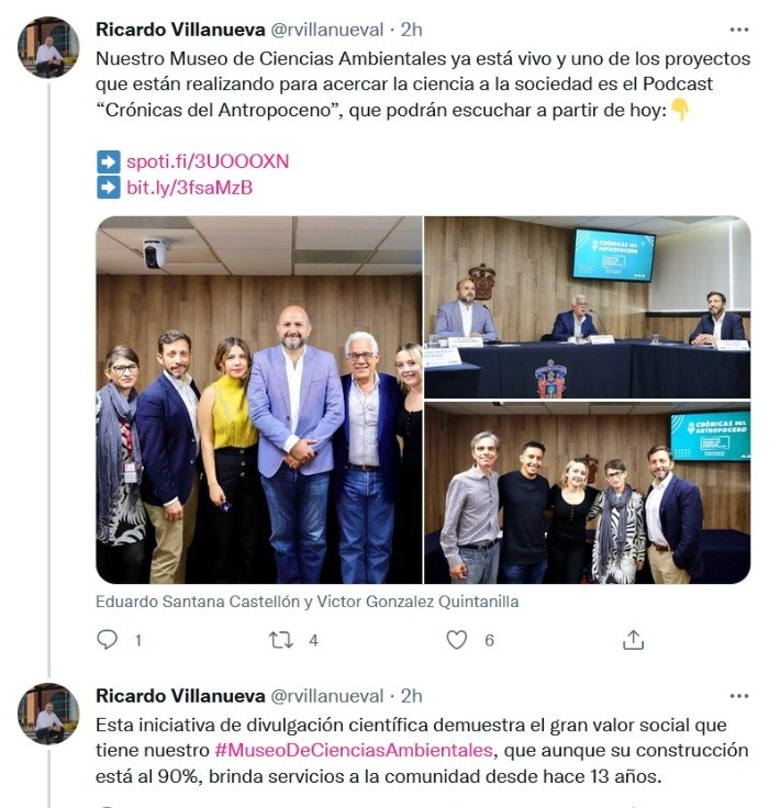 Como herramienta para la divulgación científica sobre las problemáticas medioambientales que afectan a todas las personas, fue lanzado el podcast Crónicas del Antropoceno, creado por el Museo de Ciencias Ambientales (MCA) y la Coordinación General de Comunicación Social (CGCS) de la Universidad de Guadalajara (UdeG).El doctor Eduardo Santana Castellón, director del Museo, explicó que buscan que este espacio sea una vía más para acercar la ciencia a la sociedad. Detalló que abordarán temas como el cambio climático, las energías renovables, la biodiversidad, las humanidades y el activismo, entre otros.“Desde el museo buscamos un balance de la comunicación de los problemas de los que depende la supervivencia de la especie humana, pero sobre todo de los tapatíos, desde diferentes enfoques: la ciencia, la poesía, las artes plásticas, el cine y la música”, precisó.El primer episodio se publicó este 28 de septiembre, en el marco del Día Internacional de la Cultura Científica, cada semana se presentará una nueva emisión. Está disponible en plataformas digitales y en la página gaceta.udg.mx/cronicasantropoceno.En la presentación del podcast, el rector, Ricardo Villanueva Lomelí, señaló que la producción es una muestra de que el Museo de Ciencias Ambientales está vivo y trabajando, aunque no tenga su edificio terminado.Participan en la conducción del podcast Víctor González Quintanilla comunicador de ciencia, Coco Vargas bióloga, Abril Ambriz historiadora de arte, Juan Nepote divulgador de ciencia, Marcos Gómez “Vinagrillo” biólogo y comunicador de ciencia.Anunciaron que, como parte del podcast, se creará un blog en el sitio https://museodecienciasambientales.org.mx/, y que contarán con una columna en EL INFORMADOR para reforzar la divulgación de los temas que aborden.JM