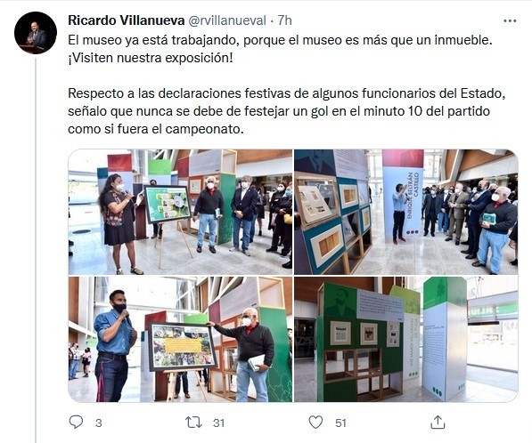 En la inauguración de la exposición “Raíces de lo vivo y el futuro”, el rector general de la Universidad de Guadalajara (UdeG), Ricardo Villanueva Lomelí, afirmó que el Museo de Ciencias Ambientales se concluirá, esto pese a que el Gobierno de Jalisco celebró el rechazo de la Suprema Corte de la Justicia de la Nación (SCJN) a la controversia constitucional sobre los 140 millones de pesos (MDP) reajustados del presupuesto estatal.“Veo al Gobierno del Estado festejando que la Corte no aceptó la controversia constitucional. Me pregunto, ¿qué están festejando, que no se va a hacer el museo más importante de México? Desde aquí les decimos: En Jalisco el Museo de Ciencias Ambientales (MCA) va a suceder con ellos, sin ellos y a pesar de ellos”, dijo el rector.Además, Villanueva Lomelí señaló que la Suprema Corte rechazó la controversia porque la UdeG está constituida como Organismo Público Descentralizado (OPD) y no como un Órgano Autónomo Constitucional (OCA), aunque confirmó que esta Casa de Estudio no está subordinada a ninguno de los tres poderes constitucionales y goza de autonomía.Para Villanueva Lomelí el fondo del asunto todavía se encuentra en la SCJN, pues el Ejecutivo estatal violentó la Ley de Egresos al indicarle al Congreso cambios en el presupuesto aprobado de 2021, lo que contraviene la separación de poderes.“Que se violente la división de poderes, la Ley de Egresos y está claro que se están acabando con proyectos más importantes de ciudad. Lo lamentable en Jalisco es que se acabó la división de poderes”, dijo.Si el asunto no se resuelve en la Corte, recurrirán a la Auditoría Superior de la Federación (ASF) para configurar un proceso penal por presunto desvío de recursos si el gobierno utiliza los fondos etiquetados para el MCA en algo distinto de lo que fue aprobado.Villanueva Lomelí dijo que el MCA lleva varios años trabajando en comunidades cercanas con la pinta de murales y exposiciones para armar una estrategia de difusión de generación de conciencia en torno al medio ambiente, una de las agendas más importantes de la humanidad."Raíces de lo vivo y el futuro" se presenta como un antecedente de los objetivos de creación del MCA para contribuir al desarrollo educativo, cultural y social del Área Metropolitana de Guadalajara (AMG) y Jalisco.JM