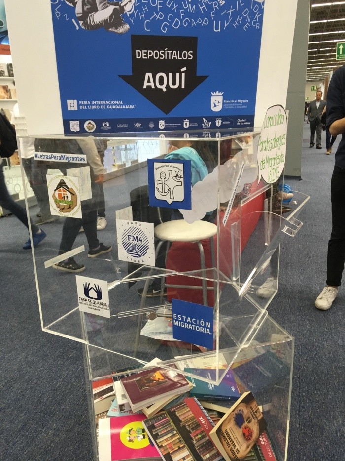 En el pasillo H de la Feria Internacional del Libro de Guadalajara, entre el stand de Océano y Santillana, se encuentra un buzón transparente, que pasaría inadvertido si no fuera por un gran letrero azul que dice "¡Dona libros para los migrantes!" que obliga a los transeúntes a detenerse. El proyecto que realiza la unidad de Atención al Migrante del Ayuntamiento de Zapopan nació hace cerca de dos meses de la inquietud de que los albergues para migrantes de la Zona Metropolitana de Guadalajara tengan todo lo necesario para que su paso por la ciudad sea más agradable. "Esto nace porque creo firmemente que un libro puede cambiar vidas y si en el caso que alguno de los migrantes no sepa leer ni escribir creo que el tener un libro en tus manos puede crearte la imperiosa necesidad de aprender a leer o simplemente que sea tu compañero de viaje, creo que con eso ya estaríamos abonando", explicó Patricia Gascón, jefa de Atención a Migrantes del Ayuntamiento zapopano. La intención es conformar bibliotecas variadas en cada uno de los albergues de la ZMG, así como en la Estación Migratoria. Por ello, los libros que están recibiendo en el buzón habilitado en la FIL serán repartidos en cada uno de ellos. Además, debido a que a la Feria no se puede entrar con cajas de libros y algunos de los que han acudido esta semana han mostrado interés en regalar más textos usados, Gascón destacó que también su oficina está recibiendo libros. Desde ahí, se dedicarán a hacer un compendio y división de los libros recibidos antes de repartirlos entre los albergues para migrantes. Prevén que la repartición se haga una semana después de terminada la Feria. "Vamos a ver si junto con almohadas y cobijas y otro tipo de donaciones podemos hacer una distribución y hacerles llegar otro tipo de cosas que necesitan en los albergues", señaló. SABER MÁSLa oficina de Atención a Migrantes en Juan Manuel 66, en Zapopan, a dos cuadras de espaldas de la presidencia municipal, está recibiendo todo tipo de donaciones para los migrantes.