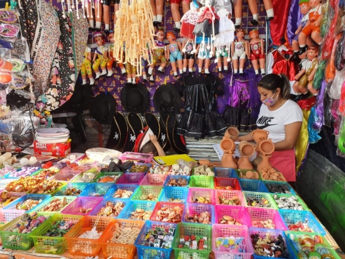 Eventos religiosos, deportivos y tianguis se han cancelado o disminuido para evitar aglomeraciones por la emergencia sanitaria de COVID-19 y los comerciantes son quienes más han resentido la crisis económica que también dejó.Una de ellas es María del Carmen Suárez, quien se dedica a vender afuera del Estadio Jalisco, eventos especiales, en la Romería y el recorrido por los templos de la Virgen de Zapopan. La Feria del Cartón y del Juguete del Parque Morelos en el Centro de Guadalajara, es el primero en el que vende en todo el año.“Ya estábamos desesperados, como comerciantes. No hubo trabajo para nada desde que empezó la pandemia. Se agradece que nos hayan dejado trabajar aquí”, señaló.Sin embargo, la afluencia y venta, a decir de María, bajó a la mitad: “no es la misma gente que viene cada año y lo entendemos porque muchos se cuidan. También hay compañeros que no pudieron venir por la cuestión de dinero, aunque nos redujeron el precio del permiso yo tuve que pedir prestado para pagarlo”.Erika Janeth López Ignacio, quien vende en la feria desde hace siete años, coincidió en la disminución de compradores en el tianguis que se instala desde las 11 de la mañana y que estará hasta el 8 de noviembre.“Ha habido menos gente y están bajas las ventas. Sólo esperamos que nos dejen trabajar porque si no, ¿para qué?, que nos ayuden porque vivimos de esto y que venga la gente a comprar”, expresó.La feria recibe a los visitantes con filtros sanitarios a la entrada y salida. Además, todos los compradores tienen que usar cubrebocas, cumplir con la sana distancia y los vendedores tener gel antibacterial en los puestos, pues si fallan en algo corren el riesgo de acortar el tiempo que se instalen.María del Sagrario Reyes ofrece tanto adornos para Día de Muertos como para Halloween desde hace 15 años. Resaltó que las medidas sanitarias son necesarias, pero que también se necesita que los visitantes ayuden pues reciben inspectores a diario.“Mucha gente no quiere ponerse cubrebocas. Hay personas que se molestan, pero si no nos apoyan y ayudan, está en peligro que nos puedan cerrar. Ahorita está tranquilo, el problema es el fin de semana. Nos da gusto que nos hayan dejado trabajar, pero sí están pesados los protocolos”, lamentó.LS
