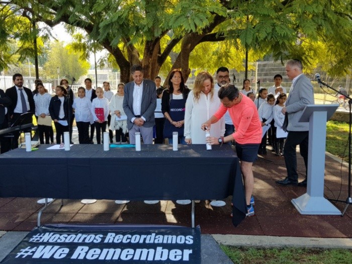 Con la finalidad de recordar a las víctimas del Holocausto, este domingo se llevó a cabo 'Nosotros los recordamos', un evento en el que familiares de sobrevivientes del genocidio y sociedad en general, realizaron distintos dibujos en pro de la paz, la tolerancia y la igualdad sobre los senderos del parque El Polvorín en Zapopan.“Recordar, es evitar que sucedan estas cosas nuevamente, y si ustedes lo ven, hemos tratado de manejar durante toda la administración un mensaje respetuoso. Nosotros vamos a seguir por este sendero, el sendero del respeto, del trabajo, de la inclusión, de pensar en los demás”, expresó el alcalde zapopano, Pablo Lemus.Además de la elaboración de los dibujos, fueron encendidas seis velas blancas en memoria de los millones de fallecidos en el Holocausto, las cuales, fueron encendidas por familiares de sobrevivientes de estas víctimas, así como por los miembros de la comunidad hebrea.Organizado en conjunto por el Ayuntamiento de Zapopan, y la comunidad hebrea de Guadalajara, el evento fue presidido por integrantes entre los que se encontraban el alcalde municipal, Pablo Lemus, y el encargado de la comunidad judía en Guadalajara, Gustavo Geiger, así como la presidenta de la comunidad hebrea en Guadalajara, Graciela Siosiano.“Poderosas las palabras que pueden devolverle la dignidad a nuestros muertos, darle voz a los resilientes y llamar por su nombre al mal extremo que frente al mundo silencioso perpetró una matanza sin precedentes, no son suficientes las palabras pero sin ellas la soledad de los niños en los campos de exterminio o los gritos de dolor regresarían al silencio y al olvido”, dijo Siosiano en memoria de los fallecidos.Además, Lemus manifestó que este evento representa un reflejo del combate a la desigualdad por la que el Ayuntamiento zapopano ha luchado durante su administración, bajo cuatro criterios básicos: educación, cultura, deporte y empleo, en los cuales se han basado las políticas públicas llevadas a cabo por su gobierno.