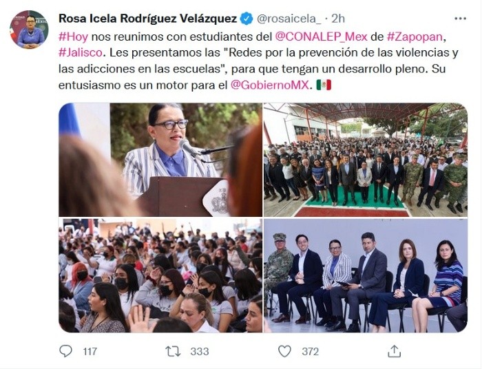 En Zapopan se presentó la estrategia “Redes por la Prevención de las violencias y las adicciones en las escuelas”, con el propósito de prevenir y atender el consumo de drogas, la violencia familiar, el acoso escolar y la ciberviolencia.En la ceremonia realizada en el Colegio Nacional de Educación Profesional Técnica (Conalep) 258, la secretaria de Seguridad y Protección Ciudadana, Rosa Icela Rodríguez, resaltó que con esta estrategia, la juventud debe disfrutar la escuela, con desarrollo pleno, lejos de las adicciones y de la violencia.Informó que se firmó un convenio de colaboración con el Conalep para avanzar y generar actividades de manera coordinada. Esta iniciativa comenzó en planteles de Conalep y secundarias del Valle de México con buenos resultados.Rodríguez también resaltó que desde las Mesas de Paz se trabaja con los directores de los planteles para implementar estrategias que ayuden a disminuir la deserción, mejorar el entorno urbano y crear espacios seguros para todas y todos los estudiantes de los Centros de Estudios Tecnológicos, Industriales y de Servicios (CETIS) y de los Centros de Bachillerato Tecnológico Industrial y de Servicios (CBTIS).A estas acciones, se suman las conferencias y dinámicas de prevención para la paz, que se han coordinado con los tres órdenes de gobierno, y en las que han participado 5 mil 620 estudiantes del Colegio de Bachilleres del Estado de Jalisco (COBAEJ), Conalep y del Colegio de Estudios Científicos y Tecnológicos del Estado de Jalisco (CECYTEJ) de Guadalajara, Zapopan, Tlajomulco y Tala.Destacó que sólo tres de cada 10 personas dependientes de las drogas logran recuperarse.JM