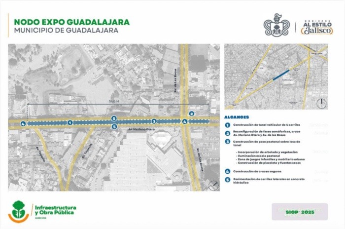 La Secretaría de Infraestructura y Obra Pública (SIOP) dio a conocer los detalles del proyecto Nodo Expo Guadalajara, una intervención urbana que busca mejorar la movilidad y la seguridad en uno de los cruces más transitados de la ciudad.