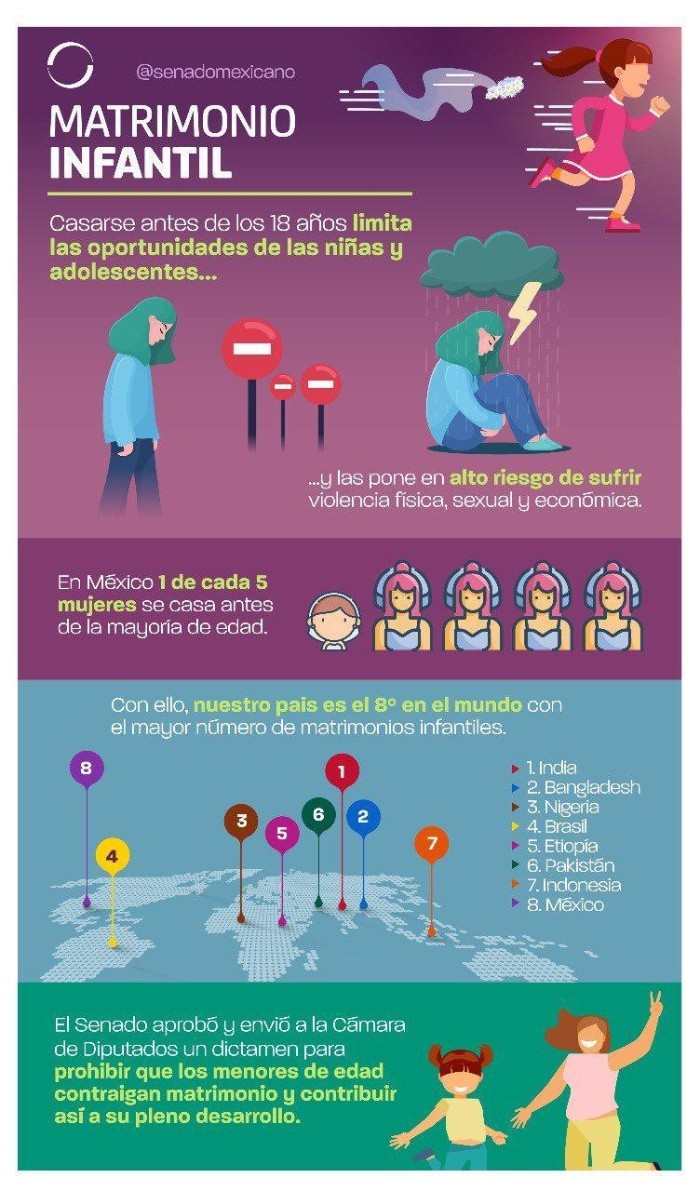 A partir de este martes, entró en vigor en 31 Códigos Civiles de los estados de la República la prohibición del matrimonio de menores de 18 años de edad, salvo en Baja California, que conserva excepciones y dispensas en sus leyes estatales.Con la publicación de un decreto, quedaron derogadas diversas disposiciones que permitían el matrimonio a partir de 16 años de edad para los hombres y 14 años para las mujeres, así como la posibilidad de que autoridades locales y familiares concedieran dispensas o consentimiento para que se llevara a cabo.En el Diario Oficial de la Federación se publicó el decreto con el que se reformó el Artículo 148 y otros del Código Civil Federal, en materia de prohibición de matrimonio infantil.El Sistema Nacional de Protección Integral de Niñas, Niños y Adolescentes (Sipinna) celebró la entrada en vigor de esa reforma, pues ayudará "a impulsar un cambio cultural para erradicar las uniones forzadas", y con ello proteger los derechos y el interés superior de los infantes, destacó.En 2016, la prohibición del matrimonio entre o de personas menores de 18 años de edad estaba vigente en 18 entidades del país y varias de ellas aún contaban con excepciones y dispensas legales que lo permitían.Desde su creación a finales de 2015, la Secretaría Ejecutiva del Sipinna se unió al esfuerzo conjunto para prohibir el matrimonio infantil a nivel federal y local, entonces encabezado por organismos internacionales y diversas organizaciones de la sociedad civil.En esta labor también han participado dependencias como la Secretaría de Salud (SS); el Sistema Nacional de Desarrollo Integral de la Familia (DIF); la Subsecretaría de Derechos Humanos, Migración y Población de la Secretaría de Gobernación; el Instituto Nacional de las Mujeres (Inmujeres).Además, los consejos nacionales de Población (Conapo) y para Prevenir la Discriminación (Conapred), así como organismos internacionales como el Fondo de las Naciones Unidas para la Infancia (UNICEF) y ONU Mujeres.El 21 de marzo pasado, el Senado de la República aprobó, por votación unánime, las reformas para prohibir el matrimonio infantil en el Código Civil Federal del país, que es uno de los 10 con mayor número de casos, con casi un millón 300 mil al año. El dictamen también fue aprobado en la Cámara de Diputados.Este esfuerzo conjunto ha logrado un avance significativo, primero con la entrada en vigor de la Ley General de los Derechos de Niñas, Niños y Adolescentes, con la que se redujo de manera importante el número de matrimonios infantiles, y ahora con su prohibición.JM