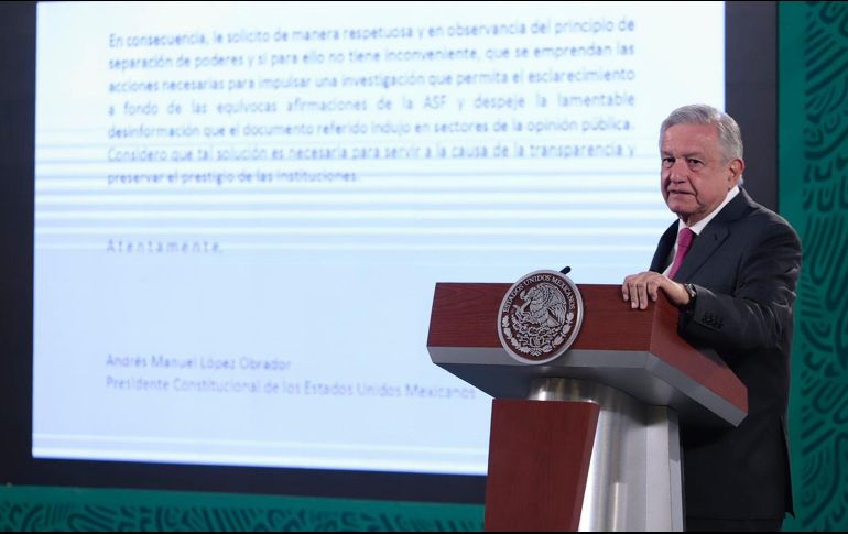 El Presidente Andrés Manuel López Obrador (AMLO) solicitará a la Cámara de Diputados investiar a la Auditoría Superior de la Federación (ASF), por considerar que el informe fue tendencioso y falseó la información sobre el uso de los recursos públicosEn la mañanera de este jueves, AMLO acusó que hubo un uso político para dañar la imagen de su gobierno, sin embargo, evitó señalar cómo responsable al auditor superior de la Federación, David Colmenares Páramo."No quiero señalar a nadie... no es un asunto personal contra alguien, pero pido que se haga la investigación y que se aclare este asunto es que imagínense, se da conocer este informe, en especial este documento del aeropuerto y vean cómo lo manejó la prensa vendida o alquilada, los medios de información que están en contra nuestra porque antes se beneficiaban cuando el antiguo régimen, vean el escándalo que hicieron, hasta intelectuales orgánicos".Señaló que su gobierno no dejará pasar nada que signifique engañar a la gente o manipular. "Nada de falsear, la verdad nos hará libres".El pasado sábado, en su revisión a la Cuenta Pública 2019, del primero año del Presidente López Obrador, la ASF reveló que según sus cálculos el costo total de la cancelación del proyecto del NAICM sería de al menos 331 mil 996 millones pesos. Luego rectificó y dijo que el costo sería menor.Sobre ese tema, AMLO expresó que "más bien creo que se trata de una actitud politiquera, de que buscaron dañarnos para complacer a nuestros opositores"."No vamos a dejar pasar este asunto porque está de por medio la dignidad, voy a enviar una carta a la presidenta de la Cámara de Diputados Dulce María Sauri para que se inicie una investigación, todo esto de manera respetuosa, porque la ASF depende de la Cámara de Diputados".GC