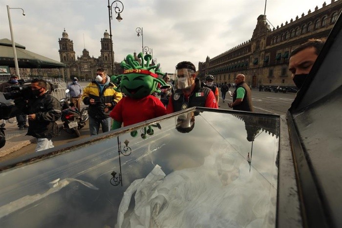 Activistas protestaron este lunes en el Palacio Nacional con un ataúd para pedir mayor protección hacia los defensores de los derechos humanos en Nuevo León."Hemos sido discriminados en Nuevo León e incluso ya nos desaparecieron a un activista, no nos dejan ejercer nuestro derecho a pedir y por eso vamos a otros estados", dijo a Efe José Ulises Treviño García, presidente de la Comisión Internacional de los Derechos Humanos de dicho estado.Junto a una decena de personas, el también abogado exigió a autoridades como el Presidente Andrés Manuel López Obrador, así como a la Suprema Corte de Justicia de la Nación, a la Comisión Nacional de los Derechos Humanos y a la Fiscalía General de la República, que se proteja a los activistas pues son propensos a desapariciones.Expuso el caso de Santiago de Jesús Ríos, quien apoyaba a cientos de familias que se dedicaban a la recolección de basura con carretones que eran empujados por caballos, lo cual prohibió en octubre de 2019 el Gobierno del estado, y ahora está desaparecido."Él estuvo con nosotros en protestas y estuvo evidenciando la manera en que el Gobierno ejercía violaciones a los derechos humanos de mucha gente", manifestó.Aseguró que incluso él mismo ha sufrido amenazas de desaparición, "de hecho cuento con medidas de protección desde hace un año, que no sirven para nada pues es más efectivo llamar al 911".De acuerdo con la ONG Front Line Defenders, México es uno de los países más peligrosos para la defensa de los derechos humanos y el medio ambiente.Según esta ONG, en 2019 se documentó el asesinato de 24 defensores de derechos humanos en el país, de un total de 304 registros a nivel mundial.Treviño García dijo que su protesta también buscaba apoyar a los presos del país que, previo a que se declarara la emergencia por coronavirus, algunos de ellos estaban a punto de obtener su liberación por haber cumplido su condena o porque habían sido declarados inocentes."Pedimos que se retomen los procesos pues a consecuencia del coronavirus se emitieron acuerdos por parte del poder judicial de los estados y del poder federal de que solo se va a dar trámite a cuestiones urgentes", manifestó.Sin embargo, dijo, de estas situaciones urgentes se excluyen casos de personas que están detenidas injustamente, y de los que ya estaban en proceso de obtener su libertad."Estaríamos hablando de una libertad de personas que son miles con los cuales también podían haber desahogado un poco las prisiones para evitar, en caso de que se propague dentro (el coronavirus SARS-CoV-2), el contagio de ellos", afirmó.JM