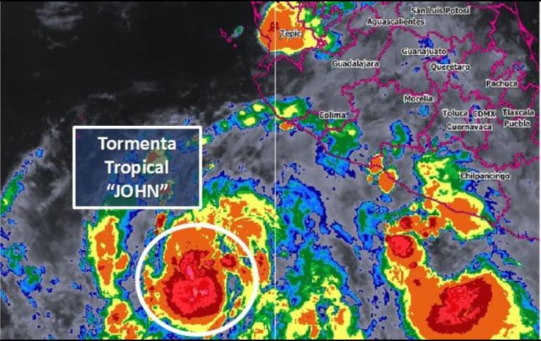 La tormenta tropical "John" se localiza al suroeste de las costas de Michoacán, lo cual favorecerá potencial de lluvias en los estados del occidente y sur de México, informó el Servicio Meteorológico Nacional (SMN).Además pronosticó oleaje de uno a tres metros de altura en las costas de Michoacán y Colima.En el reporte más reciente emitido por el organismo dependiente de la Comisión Nacional del Agua (Conagua) indicó también que la tormenta tropical se ubica a 470 kilómetros al suroeste de Punta San Telmo, Michoacán.Mencionó que el fenómeno natural registra vientos sostenidos de 65 kilómetros por hora y rachas de 85 kilómetros por hora, con un desplazamiento hacia el noroeste a 13 kilómetros por hora.Alertó porque se prevén tormentas muy fuertes a puntuales intensas en Guerrero, así como tormentas fuertes a puntuales muy fuertes en Jalisco, Colima y Michoacán.Por ello el Meteorológico Nacional exhortó a la población en general a extremar precauciones en las zonas de los estados mencionados por lluvias, viento y oleaje (incluyendo la navegación marítima) y atender las recomendaciones emitidas por las autoridades del Sistema Nacional de Protección Civil, en cada entidad.
