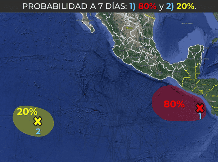 El huracán "Otis" alcanzó la categoría 5, en la escala Saffir-Simpson, devastó Guerrero. La secretaria de seguridad, Rosa Icela Rodríguez, informó esta mañana de jueves que el ciclón tropical dejó al menos 27 muertos y 4 personas desaparecidas; el recuento sigue. Sin embargo, a pesar del presente desastre natural, en el Océano Pacífico ya comienzan a formarse dos fenómenos más que, de seguir su evolución, se convertirían en "Pilar" y "Ramón".El Servicio Meteorológico Nacional (SMN), fuente climática oficial del Gobierno de México, señaló que mantiene estricta vigilancia sobre dos fenómenos:De continuar su evolución, el primero podría dar forma al ciclón "Pilar"; y, el segundo, a "Ramón". Aunque aún falta conocer su evolución porque en materia de huracanes nada es seguro, depende de muchos factores y condiciones meteorológicas precisas para que se formen.Hoy, las zona de baja presión con probabilidad de desarrollo ciclónico en el Océano Pacífico, se localiza frente a las costas de Centroamérica y se moverá hacia el oeste-noroeste, con posible trayectoria hacia las costas del Pacífico Sur Mexicano. Se mantiene en vigilancia."Pilar" y "Ramón" serían los dos siguientes ciclones de la temporada 2023 en el Océano Pacífico, de un estimado de 16 a 22; hasta ahora, se han registrado 5 tormentas tropicales; 2 huracanes categoría 1 ó 2; y 8 huracanes categoría 3, 4 ó 5.El viernes, la zona de baja presión con probabilidad de desarrollo ciclónico se desplazará al sur de las costas de Guatemala, se asociará con un canal de baja presión extendido sobre el sureste de México, generando probabilidad de lluvias fuertes a muy fuertes en dicha región, pronosticándose lluvias intensas, rachas fuertes de viento y oleaje elevado en Chiapas, además del Istmo y Golfo de Tehuantepec.El sábado, la zona de baja presión con probabilidad de desarrollo ciclónico se desplazará al sur de las costas de Chiapas, continuará asociada con un canal de baja presión que se extenderá sobre el sureste de la República Mexicana, originando chubascos y lluvias fuertes en dicha región, pronosticándose lluvias puntuales intensas, rachas fuertes de viento y oleaje elevado en las costas de Chiapas y Oaxaca. El domingo, la zona de baja presión con probabilidad de desarrollo ciclónico se aproximará a las costas de Oaxaca, propiciando probabilidad de lluvias puntuales torrenciales, rachas fuertes de viento y oleaje elevado en dicho estado, lluvias intensas en Chiapas, muy fuertes en Guerrero y Veracruz, así como chubascos en Puebla y Tabasco. Con información del Servicio Meteorológico Nacional* * * Mantente al día con las noticias, únete a nuestro canal de Whatsapp * * *OA