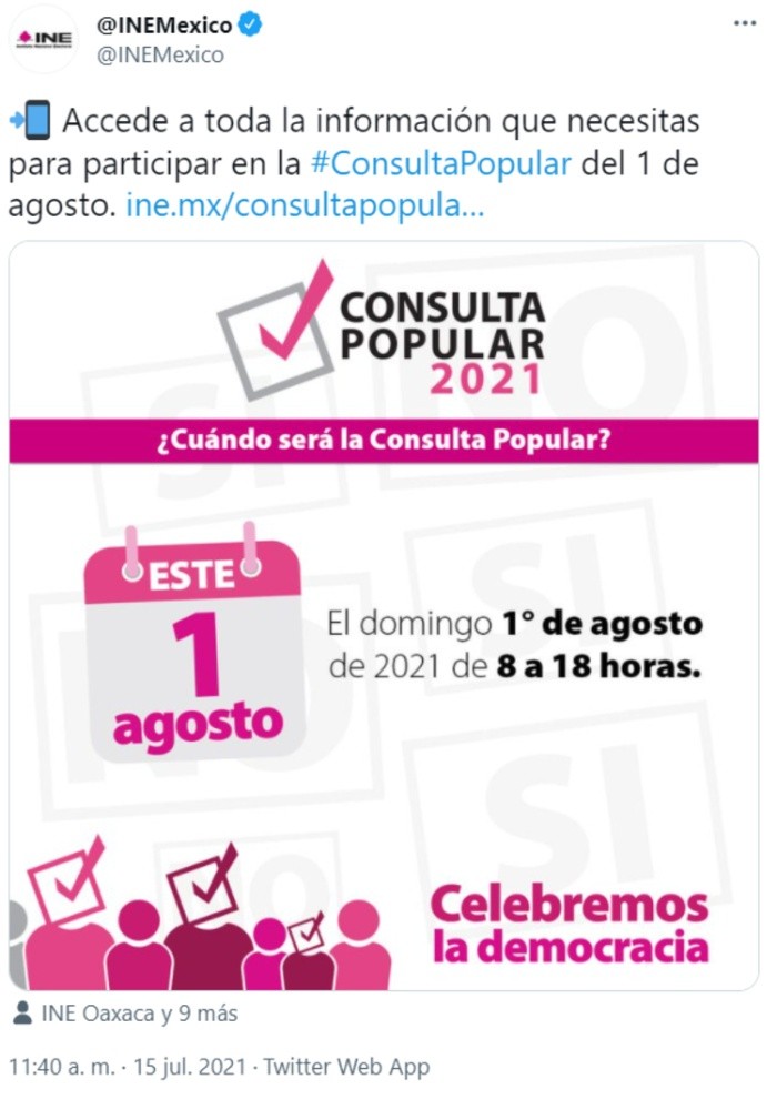 La campaña para la realización del referéndum del 1 de agosto, en el que los mexicanos podrán decidir si se enjuicia por corrupción a cinco ex presidentes del país, arrancó este jueves a cargo de Instituto Nacional Electoral (INE).Esta consulta popular, promovida por el Presidente Andrés Manuel López Obrador (AMLO) y su partido Morena, apunta a los expresidentes Carlos Salinas (1988-1994), Ernesto Zedillo (1994-2000), Vicente Fox (2000-2006), Felipe Calderón (2006-2012) y Enrique Peña Nieto (2012-2018)."Estaremos llamando continuamente a la gente a participar en esta consulta (...) para fortalecer este ejercicio de democracia directa que es la primera vez en la historia que se realiza en este país", dijo a la televisora Milenio el consejero del INE Uuc-kib Espadas.La consulta fue avalada por la Suprema Corte en octubre pasado en una cerrada votación.El máximo tribunal modificó sin embargo la pregunta inicial, que citaba a los cinco expresidentes y planteaba si se debía investigar y en su caso sancionar "la presunta comisión de delitos".Tras los cambios, la pregunta será: "¿Estás de acuerdo o no en que se lleven a cabo las acciones pertinentes con apego al marco constitucional y legal, para emprender un proceso de esclarecimiento de las decisiones políticas tomadas en los años pasados por los actores políticos, encaminado a garantizar la justicia y los derechos de las posibles víctimas?"Analistas estiman que la pregunta es poco precisa, lo que podría desalentar la participación ciudadana. Para que el referéndum sea vinculante se requiere el voto de al menos 40% del padrón de unos 90 millones de electores.Otro factor señalado es que el INE proyecta instalar 57.000 puestos electorales, contra más de 160 mil que operaron en la elección del pasado 6 de junio, en la que participaron 52% de los votantes.La autoridad electoral es la única autorizada para promover la participación en la consulta en los medios de comunicación.AMLO sostiene que es contrario a que se enjuicie a los presidentes porque no es de "venganzas", pero considera necesario que los ciudadanos decidan.AMLO asumió el poder en diciembre de 2018 con el compromiso de erradicar la corrupción y ha señalado a los cinco ex presidentes del periodo neoliberal de tomar decisiones contrarias a los intereses de México.Los votos de la consulta se empezarán a contar al cierre de casillas y los resultados se conocerán en un plazo de 48 horas, aunque se dará a conocer el avance.OF