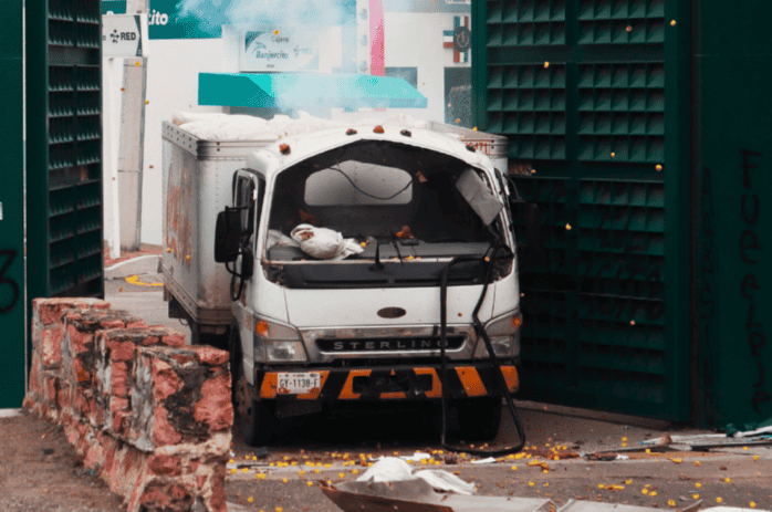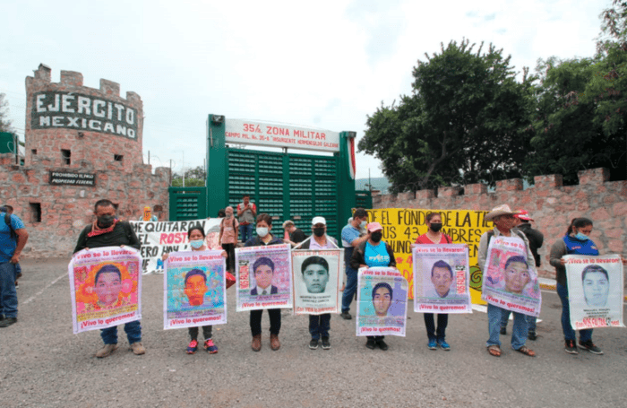 Este miércoles, varios estudiantes normalistas le prendieron fuego a un vehículo y vandalizaron el exterior del Campo Militar 35-C, localizado en la ciudad de Iguala, Guerrero, esto liego de darse a conocer como la principal sede militar señalada en la desaparición de los 43 estudiantes de Ayotzinapa en 2014.Las protestas por parte de los estudiantes en conmemoración del octavo aniversario de la desaparición de los normalistas se trasladaron este tercer día a la ciudad en donde desaparecieron los 43 estudiantes de Ayotzinapa y fueron asesinados tres de ellos, la noche del 26 y la madrugada del 27 de septiembre de 2014.La protesta fue lidera por los padres de familia, quienes realizaron un mitin afuera de las instalaciones que albergan el 27 batallón, en donde condenaron que se hubieran infiltrado en la Escuela Normal Rural “Raúl Isidro Burgos” de Ayotzinapa. Asimismo, reprocharon que, de acuerdo con el último informe del Gobierno Federal, hayan permitido que uno de sus elementos desapareciera con el grupo de normalistas sin haber hecho algo al respecto.Mientras el mitin se realizó los estudiantes reunidos en la Federación de Estudiantes Campesinos y Socialistas de México (Fecsm) levantaron las barricadas que los militares colocan al exterior para impedir el ingreso.De la misma manera, otro grupo llevó a cabo pintas en la fachada, y también colocaron colchones a los que les prendieron fuego y destruyeron parte de las cámaras de vigilancia colocadas afuera de los portones.Al concluir el mitin los manifestantes, algunos con el rostro cubierto, lograron desplazar un camión de una empresa repartidora de productos refrigerados que terminaron impactando contra el portón hasta poder abrirlo.Entre las demandas de los manifestantes estaba el cumplimiento de las órdenes de aprehensión contra mandos y personal militar que presuntamente colaboraron en la desaparición de los estudiantes de Ayotzinapa.La manifestación se da el mismo día que un juez absolvió al exalcalde de Iguala, José Luis Abarca, por el secuestro de los 43 normalistas.