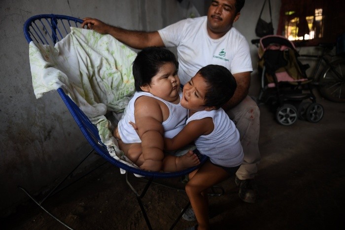 Luis Manuel Gonzales es casi como cualquier bebé de 10 meses; balbucea sus primeras palabras y quiere tocar todo, pero una dramática diferencia pone en riesgo su vida: pesa 28 kilos y su padre gana unos cuatro mil pesos al mes.El caso de este bebé, que no exige comida constantemente como podría pensarse, forma parte del universo de niños con obesidad y diabetes infantil que México encabeza a nivel mundial. Pero las causas de su excesivo peso son desconocidas.Luisito nació el 15 de diciembre de 2016 con un peso de 3.5 kilos y 52 centímetros, casi lo mismo que su hermano Mario, de casi 3 años, pero que a su lado se ve empequeñecido. A los dos meses ya pesaba 10 kilos, y en los siguientes ocho meses aumentó el doble."Creía que era porque yo tenía buena leche en mis pechos", dice su madre de 24 años, Isabel Pantoja, en la sala de su casa de cemento sin pintar del municipio de Tecomán, Colima, en la costa del Pacífico. Sus padres han abierto una página en Facebook y una cuenta bancaria para recibir donaciones que les ayuden a financiar su atención médica. Se turnan para llevarlo en una destartalada carriola al hospital para las cotidianas tomas de sangre.Es demasiado doloroso ver cómo "lastiman" sus bracitos llenos de pliegues cuando las enfermeras lo picotean hasta encontrar sus venas, comenta su padre Mario Gonzales.La angustia de sus progenitores se acentuó cuando un pediatra les dijo que quizás necesitará inyecciones de hormonas de unos 555 dólares (10 mil 600 pesos) cada una, aunque a pesar de varios estudios aún se desconoce qué padece.Una de las principales teorías es que podría tener Síndrome de Prader-Willi, que deja a los niños sin regulador de saciedad, provoca retraso mental, "músculos de gelatina" sin fuerza, problemas cardíacos y afecta el desarrollo de órganos sexuales."En el transcurso del primer mes (de vida) nosotros ya estuvimos viendo pues que el niño estaba dejando muy pronto su ropa, ya teníamos que ponerle (talla) de 2, 3 años y cuando cumplió sus dos meses yo lo llevé a su primera vacuna y ya pesaba alrededor de 9 a 10 kilos", relata casi quejándose Pantoja, que no deja de hacer mimos a Luisito.Ese mismo día un pediatra ordenó sus primeros estudios a los que siguieron muchos más. "Hay veces que lo tenemos que llevar hasta tres o cuatro veces por semana" al hospital de la capital estatal Colima, donde un día la carriola se venció, cuenta Gonzales.Para esta familia los paseos por su pueblo se acabaron. El bebé, que usa pañal de adulto, se cansa mucho después de estar media hora en la misma posición y se le tiene que cargar y caminar con él, añade Gonzales que junto con Pantoja no pierde de vista al bebé. Durante la entrevista con los padres, Luisito suelta carcajadas cuando le rozan con los dedos la planta de los pies al tiempo que avienta con fuerza la mano del bromista, explora con la boca cualquier objeto que le den y observa con curiosidad el equipo fotográfico y de video de los periodistas. En resumen, se comporta como cualquier bebé de su edad y aparentemente pasa muchas horas al día sin pedir comida.Lo que no puede hacer, lamenta Pantoja, "es gatear, no puede caminar. No podemos traerlo en una andadera como a otro niño de 10 meses", pero fuera de eso "ya se sienta, ya sostiene su cabecita, ya trata de agarrar él sólo el biberón", continúa.Su padre, un obrero fornido de una fábrica local de jugos, señala preocupado que su esposa "ya está empezando a sentir efectos del peso del niño. Dice que cuando lo carga siente que algo se le mueve por dentro".Hace un mes aproximadamente, los contactó Silvia Orozco, médico cirujano con maestría en Nutrición Clínica del centro Zone Diet México, sistema creado por un dietista estadounidense. Se renovó la confianza en el futuro de Luis Manuel.Espera resultados de las últimas muestras enviadas a Estados Unidos y que los análisis confirmen que no tiene el Síndrome Prader-Willi y que su obesidad se deba a una "inflación celular" provocada por falta de nutrientes anti inflamatorios que tuvo la madre durante el embarazo, provocando "un bajo funcionamiento tiroideo, bajo funcionamiento de sus glándulas suprarrenales encargadas del metabolismo".En ese caso el tratamiento sería hormonal, dice confiada Orozco sobre el diagnóstico del bebé que solo come fórmula de leche baja en grasas, leche materna, y papillas de vegetales y frutas.
