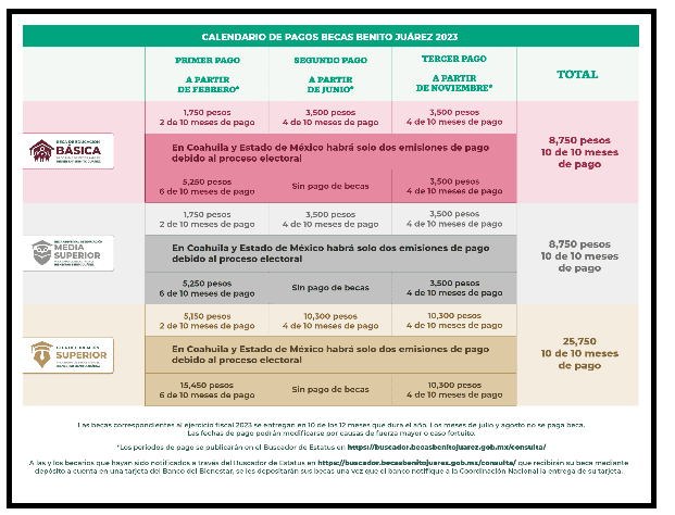 Las Becas Benito Juárez son un progama social que busca apoyar económicamente a los estudiantes para solventar sus estudios. Principalmente, las becas están dirigidas a los sectores más vulnerables, o a estudiantes que se encuentran en una escuela catalogada como "Escuela Prioritaria" o "Susceptible de atención".Para acceder a una Beca Benito Juárez primeramente hay que llenar el formato y conseguir la Cédula Única para recibir el apoyo. Es muy importante aclarar que llenar esta ficha no implica que saldrás beneficiado, ya que hay varios requisitos que el estudiante y la familia debe cumplir.De acuerdo con la Secretaría del Bienestar, aquellos estudiantes que asisten a escuelas que no son prioritaias deben llevar a cabo su registro en línea y llenar la Cédula de Solicitud de Incorporación en Línea (CSI) para así después obtener la Cédula única. Una vez que salgan los resultados, podrás revisar tu estatus y saber si recibirás o no el apoyo.De acuerdo con la Secretaría del Bienestar los interesados en conseguir el apoyo económico deben seguir los siguientes pasos:El monto total de la beca es diferente para cada sector. El pago se hace diferido a través de órdenes de pago personales e intransferibles, permitiendo a los beneficiarios retirar el dinero en sucursales bancarias:Los pagos se hacen bimestrales, este mes de septiembre, los estudiantes de Educación Básica no recibirán el apoyo, sino hasta el mes de noviembre que cubrirá el pago de septiembre-octubre y noviembre-diciembre. De acuerdo con el calendario oficial, éste último pago será de Tres mil 360 pesos, y se entregará entre la segunda y tercera semana de noviembre.