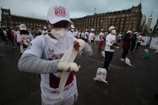 El Zócalo de la Ciudad de México logró reunir a 14 mil 299 personas para la Clase Masiva de Boxeo más grande, que le hizo conseguir el récord Guinness. Los representantes del World Guinnes firmaron el certificado con el presidente del Consejo Mundial de Boxeo (CNB) Mauricio Sulaiman Saldivar.Miles de personas se dieron cita en el corazón de la CDMX para ser parte de este evento que sin duda dejó satisfechos a cada uno de los asistentes, que desde un inicio mostraron su euforia y las ganas en cada una de las rutinas puestas por los entrenadores.Desde las 6 de la mañana de este sábado, la gente abarrotó uno de los puntos más importantes de nuestro país. Acomodados por colores, verde blanco y rojo, la gente lanzó sus jabs, ganchos y uppers, para pelear por esa marca que inmortaliza a nuestro país.Grandes personalidades del boxeo se hicieron presentes en esta fiesta. Humberto "Chiquita" González, José Pipino Cuevas, Carlos Zárate, Erik "Terrible" Morales, Jackie Nava, Juan "Alacrán" Berchelt, Óscar Valdez, Andy Ruíz, entre otros campeones también se unieron a las rutinas impartidas.Mariana "La Barby" Juárez, Alan "Rey David" Picasso y Ana María Torres, fueron los encargados de impartir la rutina con la que se cumplió el objetivo de romper el Récord Guinness, la cual tuvo una duración de una hora.Mauricio Sulaimán, presidente del Consejo Mundial de Boxeo, dio a la Ciudad de México el fajín oro y verde con el símbolo del Récord Guinness para reconocer este hecho histórico para todo México.Se superó la marca que hizo Rusia en 2017 con apenas tres mil asistentes.GC