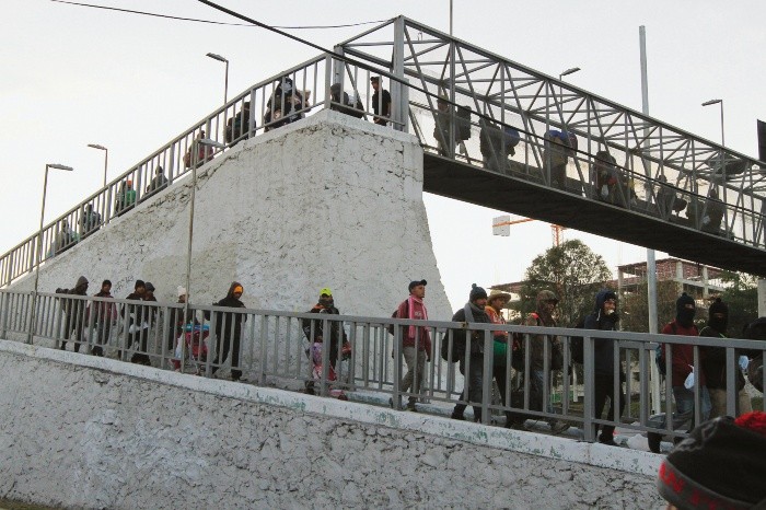 La caravana migrante que salió de Honduras hace más de un mes rumbo a Estados Unidos muestra signos de división en su camino por el Noroeste de México, mientras enfrenta constantes críticas del presidente Donald Trump y el rechazo de algunos residentes en Tijuana.Más de tres mil 200 centroamericanos -en su mayoría hondureños- habían llegado a Tijuana, su última escala antes de intentar cruzar a Estados Unidos, según cifras oficiales. Pero unos mil 500 se encontraban aún en el camino, a la altura de Mexicali, bloqueados por las autoridades.De los que lograron llegar a Tijuana, más de dos mil 100 están hacinados en un albergue que improvisó el Gobierno municipal en un complejo deportivo. El resto estaba disperso en los numerosos refugios de migrantes que normalmente operan activistas en esta zona fronteriza.Ante la saturación de los albergues que el municipio dispuso en Tijuana, las autoridades bloquearon el paso de los autobuses en que viajaban los migrantes en Mexicali, capital de Baja California.“Una gran estafa”Tras acusar a la caravana de buscar una “invasión” contra su país, Trump dispuso el envío de hasta nueve mil soldados a su Frontera Sur y advirtió que sólo aquellos que crucen por un punto oficial podrán pedir refugio.Ayer el mandatario reiteró su discurso antiinmigrante a través de su cuenta Twitter. “¿No es irónico que una vasta caravana de gente esté marchando hacia nuestra frontera en busca de asilo en Estados Unidos porque tienen miedo de estar en su país, pero van ondeando orgullosamente las banderas de su país?”, escribió el mandatario.“¿Puede esto ser posible? Sí, ¡porque todo es una GRAN ESTAFA y los contribuyentes estadounidenses están pagando por ello!”, añadió Trump.En tanto, numerosos tijuanenses protestan contra la presencia de la caravana, incluido el alcalde panista Juan Manuel Gastélum, quien pidió que los centroamericanos sean expulsados alegando que “llegan en un plan agresivo, grosero”.Existe una lista de espera de más de mil 500 tunos (personas) para ser atendidas en la frontera. Deben esperar hasta dos meses, ya que las autoridades migratorias estadounidenses los atienden a “cuentagotas”. Al día, reciben entre 30 y 90 personas. Otros migrantes de la caravana no quieren inscribirse en el proceso, temiendo que sus datos personales sean utilizados por Estados Unidos para deportarlos. Abogan por entrar todos en masa y a la fuerza, como ocurrió en la frontera de México con Guatemala.Módulo de atenciónLa Secretaría del Trabajo y Previsión Social instaló un módulo de atención para acercar opciones de empleo a la población, así como a los migrantes que deciden regularizar su condición. A ese módulo se sumarán tres más que a partir del jueves de manera itinerante serán instalados a lo largo de las rutas de la población migrante, con el propósito de acercar ofertas de plazas laborales formales, así como asistencia social.Aunque quienes lideran recomiendan seguir en grupos grandes, la segunda caravana migrante que busca llegar a Estados Unidos se dispersa debido a que varios de sus integrantes deciden adelantarse a pedir “aventones”, otros esperan por un ride o continuar caminando.La mayor parte de quienes integran el contingente llegó al estadio Corregidora de Querétaro, otros decidieron esperar por un lugar en las cajas de los tráileres que de manera constaste transitan por la carretera.Es por ello que a lo largo de la autopista Querétaro-Irapuato aún se observan largas filas de migrantes esperando abordar los camiones de una o doble caja.En tanto, las autoridades del estado de Guanajuato mantienen abierto el albergue DIF Irapuato, al que planeaban llegar desde anoche por lo menos mil migrantes provenientes de Centroamérica.A su vez, personal del Gobierno de Querétaro y policías estatales custodian el contingente hasta su salida de la Entidad, en especial a los grupos que avanzan a pie.Transitan por Estado de MéxicoEn el Estado de México otro grupo esperaba ayer en la caseta de Tepotzotlán, de la Autopista México-Querétaro, para continuar en “aventón” su viaje al Norte del país; un grupo de más de 100 centroamericanos siguió el viaje a pie.El Gobierno estatal informó que alrededor de 100 personas, que forman parte de la Caravana Migrante, caminaron desde la caseta de Tepotzotlán con dirección a Querétaro, quienes ocupaban un carril de la autopista. Al parecer conductores no les dieron “aventón”, por lo que decidieron continuar a pie.Esa fue la cuarta vez que integrantes de la caravana pasan por territorio mexiquense para dirigirse hacia la frontera con Estados Unidos.Autoridades del Estado de México implementaron operativos de acompañamiento a los migrantes, entre ellas de la Comisión de Derechos Humanos de la Entidad, además de policías estatales.Intereses políticosEl embajador de Honduras en México, Alden Rivera, afirmó que la caravana estacionada en Tijuana fue formada por intereses políticos del Partido Libertad y Refundación (Libre) de Honduras.El Gobierno mexicano debe aplicar un “plan de emergencia” para las caravanas migrantes, un fenómeno que no ha atendido con celeridad obligando a las autoridades locales e instituciones privadas a redoblar esfuerzos ante esta crisis humanitaria, denunció la organización no gubernamental Sin Fronteras.“El fenómeno tendría que haber activado un plan de emergencia, como cuando hay huracanes o sismos, y por ello hicimos una solicitud a la Secretaría de Gobernación. Hay miles de personas en la intemperie”, dijo Ana Saiz, directora de esta organización que atiende a alrededor de mil migrantes al año en la Ciudad de México.Desde hace aproximadamente un mes miles de migrantes centroamericanos atraviesan México para tratar de llegar a Estados Unidos, en un “desplazamiento forzoso” que ha puesto en jaque a gobiernos y tensado la relación con Estados Unidos.No obstante, de acuerdo con