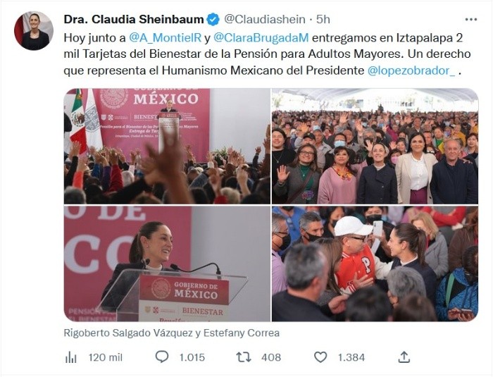 “En nosotros hay integridad y hay honestidad, y siempre como lo he dicho, nuestra actitud, por convicción, además de por ley, por convicción, es que cuando ocurre algo así, (la prioridad) es la atención a las víctimas y garantizar la justicia”, señaló Claudia Sheinbaum, jefa de Gobierno de la Ciudad de México, luego de referir que esta mañana la Línea 3 del Metro reanudó operaciones al cien por ciento tras el suceso del pasado sábado.En el marco de la entrega de tarjetas de la Pensión para el Bienestar de las Personas Adultas Mayores en la alcaldía Iztapalapa, Claudia Sheinbaum fue cuestionada por medios de comunicación sobre una posible campaña de difamación hacia el Metro y su administración, a lo que dijo que, en momentos de esa característica, uno tiene que llegar a ayudar por encima de todo, no a lucrar políticamente.“Lo que sí es evidente para mí, yo creo que para la ciudadanía, es que cuando hay una persona de la oposición que quiere hacer uso de una tragedia, que va y se filma afuera de donde ocurrió, ni siquiera dice: disculpen, en qué les puedo ayudar, cómo puedo brindar mis apoyos, qué puede hacer mi alcaldía, qué puede hacer mi partido (…); no, no hicieron eso, lo que hicieron fue llegar y filmar un video, denostando”, señaló.Añadió que “no quiere a México quien hace uso político de una tragedia, lo que quieren es una noticia de ocho columnas, no quieren ayudar a resolver problemas y eso la ciudadanía lo sabe”.Asimismo, la jefa de Gobierno reiteró que el Metro este año tiene cerca de 800 millones de pesos más que el año pasado y además se ha hecho una inversión histórica en la Línea 1 con 37 mil millones de pesos; en el Puesto Central de Control (PCC I) de cerca de 500 millones de pesos; además de la Subestación de Alta Tensión (SEAT) más moderna y grande del país denominado Proyecto Metro-Energía, con una inversión de 4 mil 500 millones de pesos, ésta última a inaugurarse la próxima semana.Además, recordó que el próximo domingo se contempla la reapertura del tramo subterráneo de la Línea 12.Previamente, en la entrega de tarjetas de la Pensión para el Bienestar de las Personas Adultas Mayores en la alcaldía Iztapalapa, ante decenas de asistentes y acompañada de Ariadna Montiel Reyes, secretaria de Bienestar del Gobierno de México y de Clara Brugada, alcaldesa de Iztapalapa, Claudia Sheinbaum destacó que la capital del país es la única entidad de toda la República que, además de recibir el apoyo de Adulto Mayor, se otorga una beca a un millón 200 mil niños y niñas que van a escuelas públicas, desde preescolar hasta secundaria, que ayudan, sobre todo a las mujeres, a las madres de familia.Añadió que, ahora con el apoyo del Gobierno federal todas las personas con alguna discapacidad, también reciben un apoyo económico.“Qué puede ser más humano, más amoroso, que cuidar a los adultos mayores, cuidar a los niños y a las niñas, y cuidar a una persona que tiene discapacidad. Ahí en esos derechos, no programas, sino derechos, porque hoy están en la Constitución de la República y en la Constitución de la Ciudad de México, se ve reflejado ese amor a la gente, ese humanismo”, señaló.JM