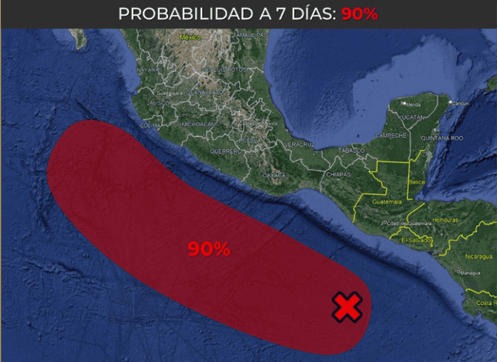 El temporal de lluvias continúa y existe posibilidad de desarrollo ciclónico en el Océano Pacífico, según informó el Servicio Meteorológico Nacional (SMN), fuente oficial del Gobierno de México en materia meteorológica.El SMN señaló que una zona de baja presión asociada a la onda tropical número 22 aumentó a 50% de probabilidad para desarrollo ciclónico en 48 horas y mantiene 90% en 7 días. Se localiza a 505 kilómetros al sur de la desembocadura del Río Suchiate (frontera entre México y Guatemala), se desplaza hacia el oeste-noroeste.Para hoy, el monzón mexicano originará lluvias puntuales fuertes en Sonora, Sinaloa, Chihuahua y Durango; así como lluvias con chubascos en Baja California Sur; todas descargas eléctricas.Un canal de baja presión en el interior de la República Mexicana, en combinación con el ingreso de humedad del Océano Pacífico y Golfo de México y con inestabilidad en niveles altos de la atmósfera, ocasionarán lluvias puntuales muy fuertes en Nayarit, Jalisco, Colima y Michoacán, y lluvias puntuales fuertes en el Estado de México y la Ciudad de México, las cuales se acompañarán de descargas eléctricas, rachas de viento y posible caída de granizo; así como chubascos con posibles descargas eléctricas en estados del norte, noreste, occidente y centro del país.Por otro lado, la onda tropical Núm. 22 que se desplazará sobre el sureste mexicano, se asociará con una zona de baja presión con probabilidad para desarrollo ciclónico que se localizará al sur del Golfo de Tehuantepec, lo que originará lluvias puntuales intensas en Guerrero, Puebla, Veracruz, Oaxaca, Chiapas y Tabasco, acompañadas de descargas eléctricas, rachas de viento y posible caída de granizo.El ingreso de aire húmedo proveniente del Mar Caribe, generará lluvias puntuales fuertes con descargas eléctricas y rachas de viento en los estados de la Península de Yucatán.El huracán "Fernanda" del Océano Pacífico, que se ubica al suroeste de la Península de Baja California, se desplazará hacia el oeste, alejándose del país y sin afectarlo.Finalmente, prevalecerá el ambiente vespertino cálido a caluroso en la mayor parte de la República Mexicana, llegando a ser muy caluroso en zonas de Sinaloa, Sonora, Chihuahua, Coahuila, Nuevo León y Tamaulipas; y con temperaturas máximas extremadamente calurosas sobre el noreste de Baja California.Con información del Servicio Meteorológico Nacional OA