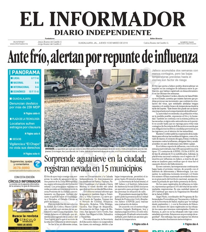 El pasado jueves, científicos confirmaron el inicio del fenómeno "El Niño", debido al calentamiento del mar y los vientos en la troposfera. Estudios demostraron anomalías en las costas de ecuador y Perú, situación necesaria para la aparición de este evento. Como es de pensarse, este cambio favorece también el acontecer de fenómenos climáticos extremos en México, entre estos, que las lluvias de invierno se intensifiquen y las de verano se debiliten, mientras que en la zona centro norte aumentan los frentes fríos al final del año, y disminuyen los huracanes en el Atlántico y el Golfo.De acuerdo con el sitio Meteored.com, desde 1950 hasta la fecha se han presentado más de 20 eventos ligeros a fuertes que han ocasionado efectos desde benéficos a perjudiciales, de acuerdo con la región y el momento del año. Un ejemplo es lo ocurrido en el periodo de 1997-1998, cuando el fenómeno "El Niño" dejó intensas lluvias en la zona del Pacífico Mexicano, destacando los efectos devastadores del huracán "Paulina", que con una categoría 4 afectó los estados de Oaxaca y Guerrero y dejó cientos de muertos y damnificados, antes de que otro ciclón, "Linda", de categoría 5, se convirtiera en el más poderoso en la zona nororiental hasta ese año.Más tarde ese año, se registró un invierno de frío extremo, acompañado de lluvias, y que entre otros momentos climáticos destacados están la nevada en diciembre del 13 de diciembre, que se registró en Guadalajara, Jalisco.La primavera de 1998 fue sofocante, y en la Ciudad de México se registró una temperatura récord que se mantiene hasta el día de hoy, con 33.9 grados Celsius.Otro periodo extremo fue el 2015-2016, cuando se formó en el Pacífico, frente a las costas de Jalisco, el huracán más intenso hasta el momento, "Patricia", con vientos de hasta 345 km/h.En marzo de 2016, una tormenta invernal extrema recorrió nuestro país generando viento fuerte de hasta 100 km/h, granizadas incluso en costas, lluvias-tormentas, nevadas en varios estados y claro, un ambiente muy frío. La más recordada quizá sea la del 9 de marzo, cuando cayó agua nieve en la zona de Zapopan, Jalisco. OF
