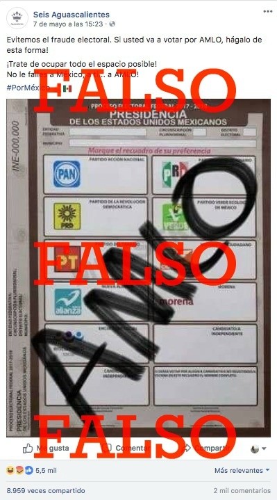 Los electores se enfrentarán el próximo 1 de julio a doce recuadros en la boleta para elegir presidente. ¿Cómo deberán votar para que su voto sí cuente? Verificado 2018 lo explica.El voto es válido cuando el elector marca un solo recuadro con el emblema del partido político o candidatura independiente, o bien, más de uno de los recuadros siempre y cuando correspondan a los partidos que van juntos en la misma coalición, de acuerdo con el Consejo General del Instituto Nacional Electoral.En ese sentido, es fundamental que cada elector sepa que hay tres coaliciones en la elección presidencial, pero que hay diferencias importantes en las elecciones para senador, diputado o gobernador de cada estado. Es decir, no siempre van los mismos partidos juntos.Por ejemplo, en la elección para gobernador en Jalisco, Movimiento Ciudadano, PRD y el PAN tienen diferentes candidatos a la gubernatura, pero van juntos en la elección presidencial. Si un elector en Jalisco tacha los logos de ambos partidos en la elección presidencial, su voto será válido. Si hace lo mismo en la elección para gobernador, su voto será nulo.Por ello es fundamental que los votantes sepan qué ocurre en cada estado.En la elección presidencial hay tres candidatos respaldados por más de un partido político y dos independientes.Para elegir a Ricardo Anaya, el votante puede seleccionar la casilla de cualquier partido de la coalición Por México al Frente, como Partido Acción Nacional (PAN), Partido de la Revolución Democrática (PRD) o Movimiento Ciudadano (MC), o bien, una combinación de dos o tres de ellos.Para elegir a Andrés Manuel López Obrador, el elector puede marcar el recuadro del partido Movimiento Regeneración Nacional (Morena), Partido del Trabajo (PT) y Partido Encuentro Social (PES) o -al igual que en el caso anterior- una combinación de dos o tres partidos que conforman la coalición Juntos Haremos Historia.Para votar por José Antonio Meade, el sufragista puede marcar el o los recuadros de los siguientes partidos: Partido Revolucionario Institucional (PRI), Partido Verde Ecologista de México (PVEM) y Partido Nueva Alianza (PANAL), que conforman la coalición Todos por México o, al igual que con los candidatos anteriores, puede marcar una combinación de dos partidos o la totalidad de los recuadros de los partidos que conforman la coalición.Para votar por alguno de los candidatos independientes, sólo hay que marcar el recuadro donde aparecen sus nombres: Margarita Zavala o Jaime Rodríguez, quien en la boleta aparece como “Bronco independiente”.El voto también es válido cuando el elector escribe el nombre y apellido de un candidato no registrado en un recuadro en la parte inferior y derecha de la boleta.El laboratorio especializado en temas electorales, Strategia Electoral creó un simluador, en el cual el ciudadano puede practicar su voto. La aplicación alerta al elector si la manera en la que votó fue correcto o si su voto sería anulado.Una cruz, una paloma, no importa, siempre y cuando la preferencia sea clara. La marca puede ser hecha con el lápiz entregado por el INE, o bien, con cualquier pluma o plumón que lleve el elector.El Instituto Nacional Electoral (INE) considera un voto nulo cuando el elector no marca alguno de los recuadros de la boleta, selecciona más de un recuadro entre partidos opositores, selecciona más de un independiente (dos independientes o un independiente y uno o más partidos) o coloca una marca en toda la boleta.En redes sociales circula una imagen que sugiere que para votar por López Obrador es necesario marcar toda la boleta. Esta información es falsa, pues esto implicaría un voto nulo.No en todos los cargos para diputaciones federales y senadurías los partidos compiten en coaliciones. Por ello, el voto se anulará si el elector selecciona dos o tres partidos en distritos electorales o entidades federativas en donde los partidos no formaron coaliciones.El simluador de Strategia Electoral también permite prácticas el voto para diputaciones y senadurías federales y, al momento de ir a votar, saber cómo votar sin riesgo a anular -sin querer- el voto.El PAN, PRD y MC no competirán de manera conjunta por las diputaciones federales y senadurías de Nuevo León, por ejemplo.El PRI, PVEM y PANAL no contenderán en coalición para las diputaciones federales y senadurías de Aguascalientes, Baja California, Baja California Sur, Chihuahua, Ciudad de México, Durango, Guanajuato, Jalisco, Michoacán, Nayarit, Nuevo León, Puebla, Querétaro, Tabasco y Tamaulipas y en la diputación en Veracruz.Morena, PT y PES no participarán en coalición por las diputaciones federales y senadurías de Hidalgo y la diputación por el distrito tres de Nayarit.Este martes, el INE publicó un video tutorial y una infografía en los que explica cómo ejercer el voto sin riesgo a que éste se anule.