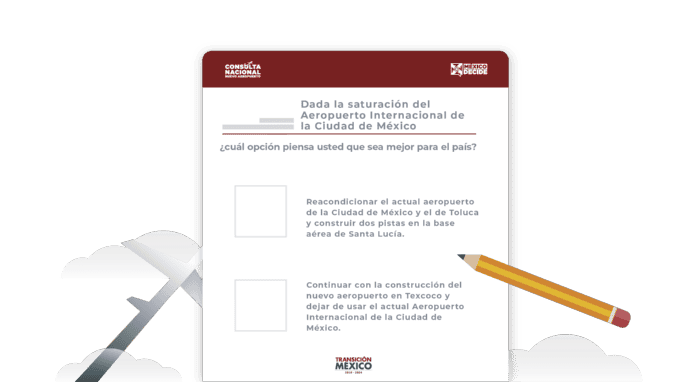 Los mexicanos que cuenten con su credencial de elector podrán participar en la Consulta Nacional sobre el Nuevo Aeropuerto Internacional de México, a realizarse del 25 al 28 de octubre en todo el país.Esta identificación oficial, que expide el Instituto Nacional Electoral (INE), será el único requisito para participar en este ejercicio, por lo que será recibida y registrada en diversas mesas por los voluntarios, quienes tendrán la encomienda de garantizar la no duplicidad en la emisión del voto.La opinión de los ciudadanos en la consulta quedará plasmada en más de 500 mil boletas, cuya impresión podría incrementar en función de la participación, dispuestas en mil 73 mesas y distribuidas en plazas públicas de 538 municipios de los 32 estados del país.En el sitio web mexicodecide.com.mx se muestran textos, videos e infografías con los que se informa a los ciudadanos sobre este proyecto para que así puedan tomar una decisión en esta consulta, para la cual se instalarán mesas de votación en 538 municipios en las 32 entidades del país.También se muestra una boleta como las que encontrarán los asistentes el día de la consulta, con la pregunta: “Dada la saturación del Aeropuerto Internacional de la Ciudad de México, ¿cuál opción piensa usted que sea mejor para el país?”.Para mayor información, los mexicanos pueden consultar la página México Decide, y sus redes sociales Twitter y Facebook: @mexico_decide y www.facebook.com/mexicodecide.com.mx, respectivamente. Así como el canal de YouTubeAC