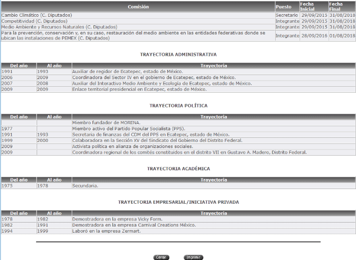 A pesar de contar sólo con secundaria, María Chávez García se desempeña como secretaria administrativa del fondo sectorial Conacyt-Sener, así lo detalla la información que aparece en su declaración patrimonial y de posible conflicto de interés, la cual no quiso hacer pública a pesar de que el Presidente Andrés Manuel López Obrador afirmó que todo funcionario público debería abrir toda su información patrimonial o no podría trabajar en el gobierno federal.Documentos públicos indican que la servidora pública se ha desempeñado como mostradora de ropa interior, diputada federal y asesora en el Senado de la República.El Universal encontró en el Sistema de Información Legislativa (SIL) que entre 1978 y 1991 María Chávez García trabajó como exhibidora de lencería para empresas de ese ramo, y entre 1991 y 1993 fungió como auxiliar de regidor en Ecatepec, Estado de México.Del 29 de agosto de 2015 al 31 de agosto de 2018, Chávez García fue electa diputada federal por el distrito 7 de la Ciudad de México en la LXIII Legislatura por Morena, en donde fue parte de las comisiones de Cambio Climático, Competitividad y de Medio Ambiente.De septiembre a noviembre del año pasado laboró como asesora de un senador.En la plataforma Declaranet, que pertenece a la Secretaría de la Función Pública (SFP), se indica que María Chávez García inició funciones en la Secretaría de Energía desde el 1 de diciembre de 2018 y que sus estudios de secundaria los realizó en la Escuela Secundaria para Trabajadores número 42.En el portal se indica que el servidor no aceptó hacer públicos sus datos patrimoniales y su declaración de posible conflicto de interés. "No estoy de acuerdo en hacer público mi posible conflicto de interés", indica el portal.LS