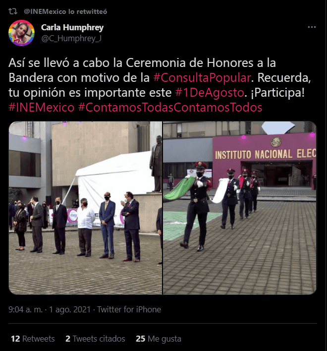 El Instituto Nacional Electoral (INE) dio inicio al proceso de consulta popular este domingo con honores a la bandera.Este domingo se lleva a cabo por primera vez el proceso de consulta popular a nivel nacional. El INE ha sido el órgano encargado de organizar este proceso de participación ciudadana.El Consejo General del INE se instalará de manera permanente en sesión.Un total de 93.6 millones de ciudadanos están llamados a participar en la consulta popular a través de las 57 mil 087 mesas receptoras que se instalarán en todo México.A partir de las 8:00 horas comenzaron a instalarse las poco más de 57 mil mesas de votación en todo el país.Se prevé que alrededor de las 10:00 horas el secretario ejecutivo del INE haga un corte sobre cuántas mesas fueron instaladas.***Si te interesó esta noticia y quieres saber más, entonces descarga y descubre INFORMAPlus, la aplicación digital de EL INFORMADOR, en donde tenemos contenidos exclusivos, seleccionados por nuestros editores, para darles una experiencia más completa a los lectores. Descarga la aplicación y pruébala GRATIS por treinta días. Para iOS: https://apple.co/35jaVgbPara Android: https://bit.ly/3gwVSEVSi eres suscriptor de EL INFORMADOR tu acceso está incluido, solicítalo al 33 3678-7777AC