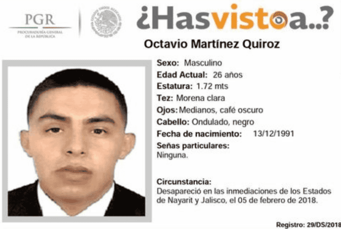 La Procuraduría General de la República (PGR) reportó la desaparición, desde el pasado 5 de febrero, de dos agentes de la Agencia de Investigación Criminal (AIC), en el estado de Nayarit.Este domingo, fuentes de la Procuraduría General de la República (PGR) confirmaron que los agentes ministeriales, que aparecen en un video difundo presuntamente por el cártel Nueva Generación en redes sociales, "son nuestros".Indicaron que se tratan de Octavio Martínez Quiroz y Alfonso Hernández Villavicencia, adscritos a la Subprocuraduría Especializada en Investigación de Delincuencia Organizada (SEIDO), quienes fueron levantados por sicarios del referido grupo criminal.La PGR reportó esta tarde la desaparición e informó que los agentes se encontraban en días de descanso y acudían a un evento familiar en dicha entidad. Ante este hecho, inició las investigaciones necesarias para la búsqueda y localización de los efectivos de la Procuraduría.La dependencia advirtió que no escatimará esfuerzos ni recursos en la localización de los agentes.LS