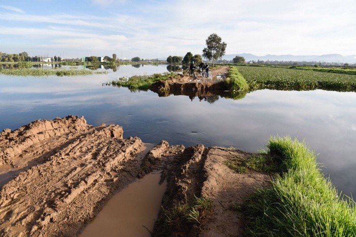 El gobierno del Estado de México informó que hasta el momento se estima que la ruptura del bordo en el margen izquierdo del Río Lerma, ha ocasionado afectaciones en más de mil domicilios y zonas de cultivo colindantes, con tirantes de 10 a 80 centímetros.Indicó que los barrios afectados son: San Luquitas, San Pedrito, San Nicolás y Santiaguito, y que tras el desbordamiento, el apoyo a los habitantes de la zona y las acciones para atender la contingencia se dieron desde el primer minuto de este sábado.Señaló que el secretario de Obra Pública, Rafael Díaz Leal Barrueta, el director local de la Conagua, Jesús Castañeda, y Miguel Torres, director general del Sistema para el Desarrollo Integral de la Familia del Estado de México (DIFEM) y presidente del Gabinete Regional, recorren la zona para determinar las acciones de ingeniería hidráulica a seguir, para resolver cuanto antes la situación.De igual forma, personal especializado de la CAEM ha trabajado en el sitio para colocar 600 metros cúbicos de piedra, y así cubrir los 15 metros de la ruptura; posteriormente, se buscará abatir los niveles de agua en zona.Para ello, hacen uso de cuatro retroexcavadoras, siete camiones de volteó, dos camiones de presión succión, un mini vactor, dos especializados y un mini cargador.En este momento, indicó el gobierno mexiquense, personal técnico de la CAEM, evalúa la estrategia para reparar el bordo del cuerpo de agua y sumarse así a los trabajos de ingeniería hidráulica que determine la Conagua. De momento se han iniciado los trabajos de reparación en dos frentes, para acelerar la solución.Refirió que la Comisión del Agua del Estado de México (CAEM), activó los protocolos de actuación para controlar el escurrimiento de agua, presentado a la altura del puente de Calzada Tultepec y Rivera Río Lerma, cerca de la Unidad Deportiva de San Mateo Atenco.Asimismo, se realizan trabajos para contener el desbordamiento, en coordinación con la Comisión Nacional del Agua (Conagua), de quien es responsabilidad este cuerpo de agua.Señaló también que el ayuntamiento de San Mateo Atenco ha dispuesto cuatro albergues y cocinas para las familias que sufrieron daños o que en forma preventiva quieran ponerse a resguardo.Por su parte, el Sistema para el Desarrollo Integral de la Familia del Estado de México puso a disposición ocho Unidades Médicas y 200 brigadistas que, en conjunto, apoyan a las familias que resultaron afectadas, tanto en limpieza de su vivienda, cuidado de su salud y atención en los albergues.Adicionalmente, se cuenta con el apoyo del Ejército Mexicano, dependencias estatales y autoridades municipales.OF