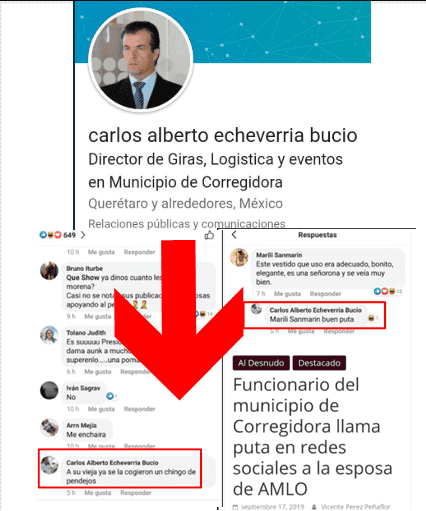 El trabajador del municipio de Corregidora que en días pasados hizo comentarios ofensivos en redes sociales contra Beatriz Gutiérrez Müller, esposa del Presidente Andrés Manuel López Obrador, fue separado del cargo en forma definitiva.El alcalde Roberto Sosa Pichardo dijo que tomó la decisión, debido a que el combate a la violencia de género es un tema fundamental en su agenda de gobierno municipal.Cabe recordar que quien hasta hace algunos días era el coordinador de giras del alcalde de Corregidora, de nombre Carlos Echeverría Bucio, hizo comentarios ofensivos contra Gutiérrez Müller.El hoy despedido se enfrascó en una discusión con una usuaria de la red social Facebook sobre la forma de vestir de Gutiérrez Müller y después subió de tono, hasta utilizar palabras altisonantes.Sosa Pichardo dijo que platicó con Echeverría Bucio y le comentó que estaba intentando aclarar el tema, pero lo cierto es que la decisión está tomada y en este momento está despedido.Recordó que Corregidora es el único municipio de la entidad en que el Instituto Municipal de la Mujer es parte del Gabinete local, precisamente por la importancia que se otorga a ese sector de la población y al combate a la violencia de género.LS