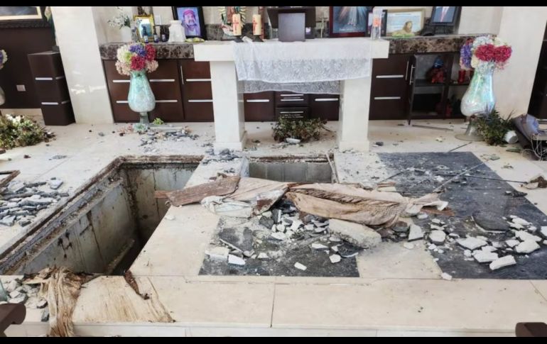 El mausoleo de la familia de Dámaso López Núñez "El licenciado" quien purga una condena en los Estados Unidos, ubicada en un cementerio, del nuevo municipio de El Dorado, de donde es originario, volvió a ser objeto de destrucción, en esta ocasión se presume que se usó maquinaria para destruir su construcción.A solo tres días que se divulgó que esta capilla, ubicada en la comunidad de Portaceli, personas desconocidas allanaron la capilla para sustraer los restos del exsindico de El Dorado, Damaso López García y su hijo, Adolfo López Núñez, padre y hermano del "licenciado", nuevamente fue blanco de severos daños a toda su estructura de construcción.Los nuevos actos vandálicos contra esta capilla, ubicada a solo 57 kilómetros al sur de la capital del estado, se presume que fueron causados con maquinaria pesada, sin que ninguna autoridad se haya percatado de la acción.Fue a través de un video subido a redes sociales como se conoció que el enorme mausoleo construido en el panteón, cercano a la comunidad de Portacelis, el cual, tenía un diseño en su interior que asemejaba al altar de una iglesia católica, con bancas de madera, en color caoba y con fotografías del padre de Damaso López Nuñez.Sólo el martes pasado, la Fiscalía General del Estado anunció el inicio una investigación de oficio por la destrucción de tumbas y sustracción de restos humanos, en un panteón en el nuevo municipio de El Dorado, pese a que ninguna persona, ha presentado denuncia sobre este allanamiento del mausoleo.En un breve mensaje en redes sociales, la autoridad judicial del estado sólo externó que hasta el momento nadie a presentado reporte o denuncia de los hechos, los cuales, fueron divulgados a través de un video desde la noche del domingo pasado. Sobre el primer allanamiento de esta capital, fue que personas armadas y dotadas de herramientas, destrozaron las protecciones, la puerta principal de acceso al mausoleo que se ubica en uno de los cementerios, cercanos a la comunidad de Portacelis, en el recién creado municipio de Eldorado, a 57 kilómetros al sur de la capital del estado.Según las imágenes divulgadas, las personas que profanaron la enorme capilla, donde reposaban los restos de Damaso López García, padre del "Lic", su hermano, Adolfo y un cuñado, destruyeron parte del interior y sustrajeron los restos mortales, de las dos primeras personas, cuyas gavetas fueron violadas. EE