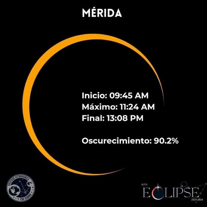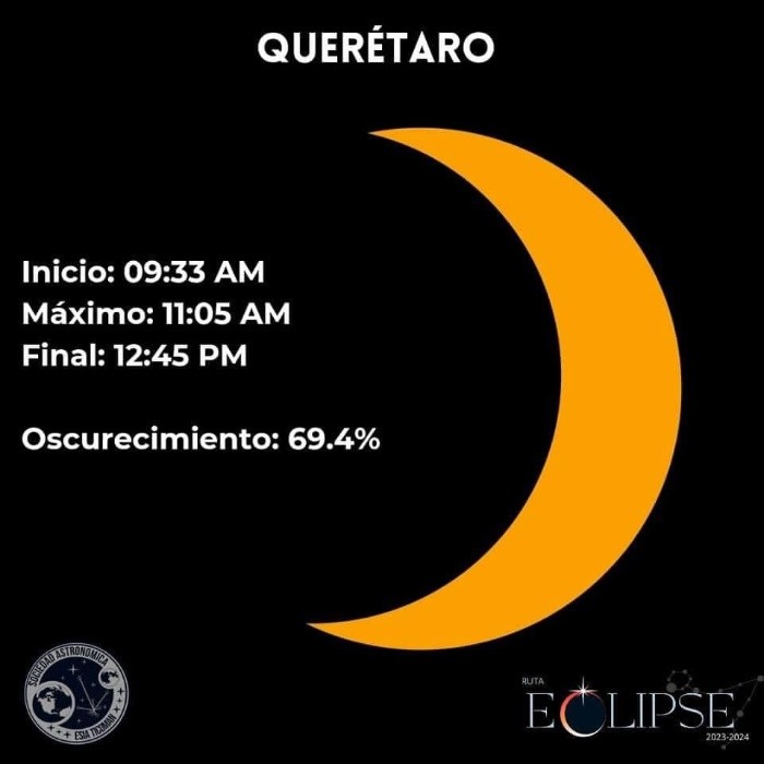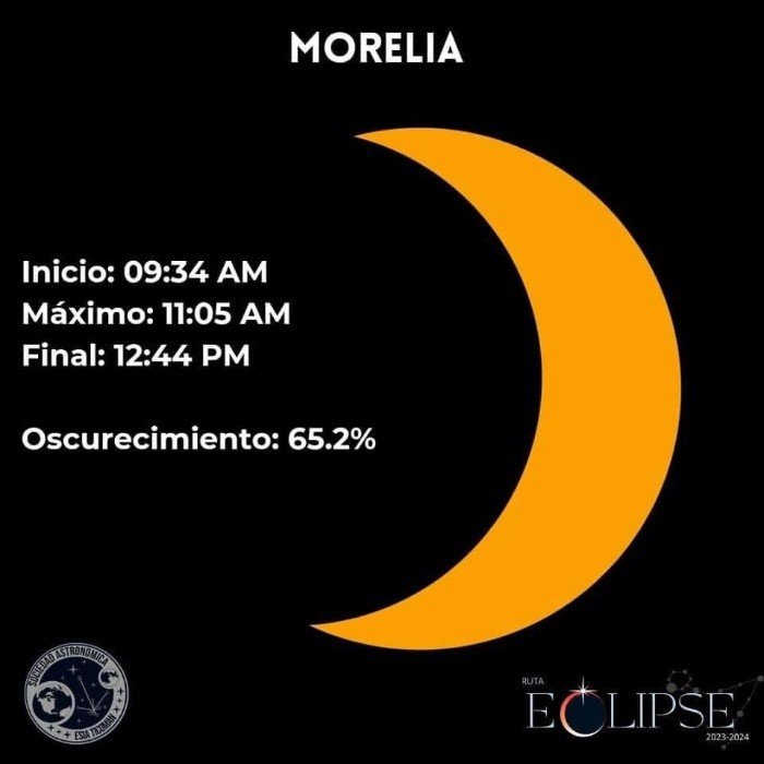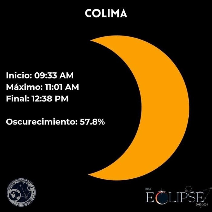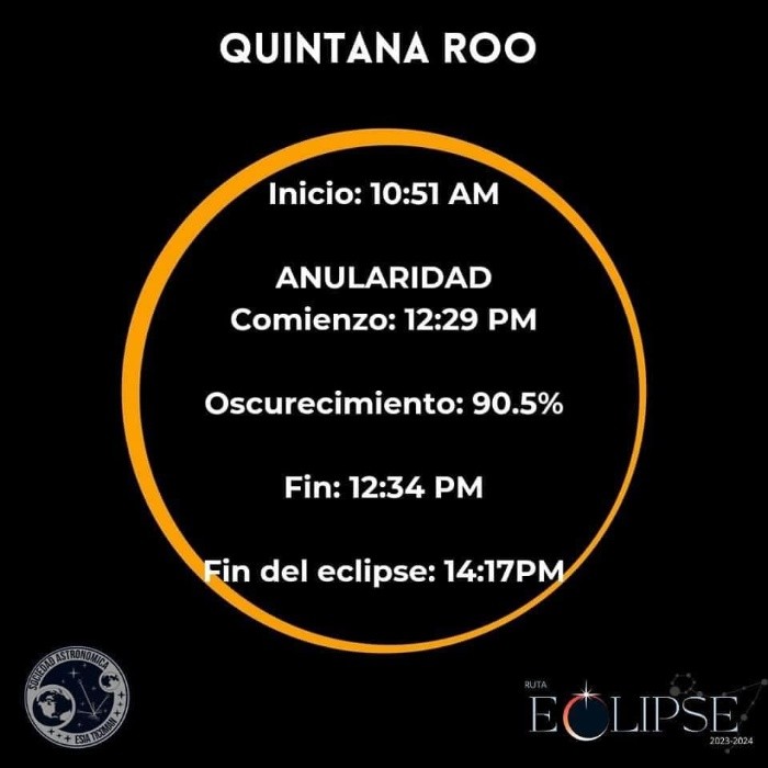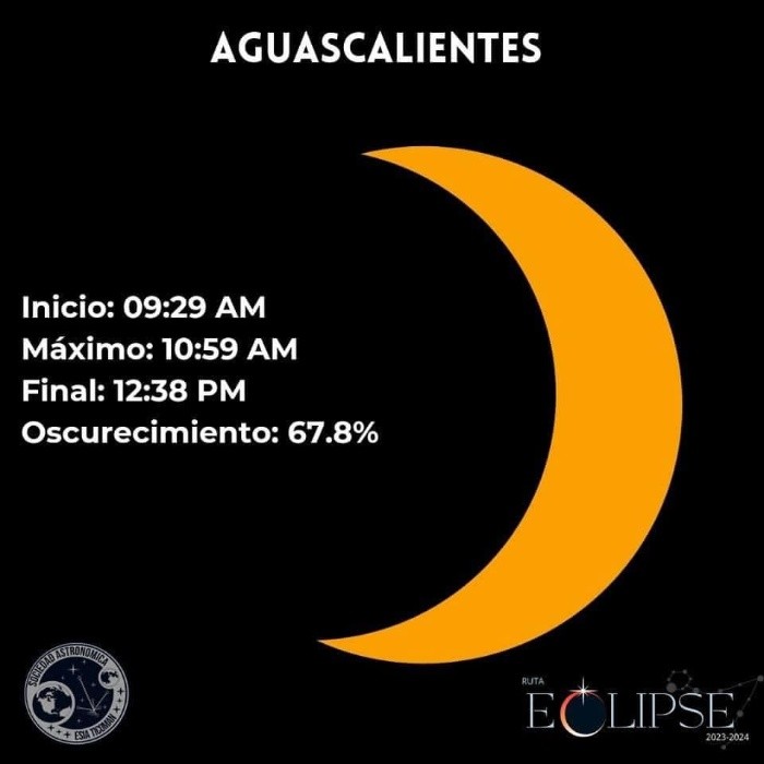 Este sábado 14 de octubre del 2023, México vivirá un eclipse solar anular, un fenómeno que es esperado por cientos de aficionados, expertos astrónomos, académicos y científicos del país. Desde hace varios años México no vive un eclipse tan significativo, por lo que las expectativas y la emoción estarán puestas por miles en el firmamento del sábado, que por un transcurso de horas de desconcierto y fascinación cambiara su lógica diaria. Es importante recalcar que durante este eclipse, al no ser total, no habrá oscuridad absoluta sobre nuestro país. Dependiendo de la región, para ciertos estados y ciudades será un eclipse parcial, mientras que otros podrán disfrutar de un eclipse anular. Si es el caso que la geografía permite la contemplación del eclipse anular, lo maravilloso e irrepetible de este fenómeno es que permitirá a los mexicanos disfrutar del "anillo de fuego", un aro de luz en torno a la luna obscureciendo al sol, pero es necesario tener claro que seguirá siendo de día. Ruta Eclipse 2023-2024, mediante datos racionales y científicos, se ha encargado de compartir los mejores métodos para ver el eclipse de modo seguro, desmentir creencias y mitos en torno al fenómeno, y además especificar cómo es que se verá el eclipse ciudad por ciudad en nuestro país. De modo que si te preguntas cuánto podrás ver o presenciar desde tu ciudad, las siguientes imágenes pueden servirte de orientación y guía para lo que México vivirá este sábado. Todas las imágenes son cortesía de Ruta Eclipse, los cuales puedes seguir a través de sus redes sociales oficiales para mantenerte informado de lo más importante relacionado con el eclipse. También es posible conseguir con ellos lentes certificados, en distintas ciudades del país, para contemplar el eclipse de modo seguro, y así evitar daños a tus ojos. Así es como se vería el eclipse solar del sábado 14 de octubre ciudad por ciudad en México, usando los filtros certificados para la contemplación del mismo: No olvides que mirar el eclipse directamente puede ocasionar daños en tus ojos, por lo que es importante utilizar filtros y lentes especializados con la certificación ISO 12312-2 2015, para evitar efectos perjudiciales para tu vista. Recuerda seguir a Ruta Eclipse en sus redes para mantenerte informado de la información más importante del eclipse solar de este sábado 14 de octubre, y también del que habrá en 2024. FS