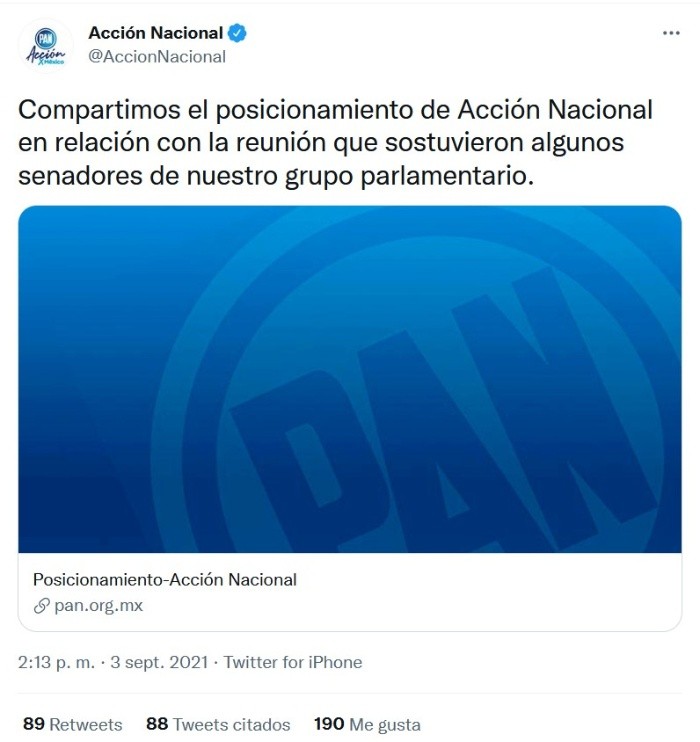 La dirigencia nacional del PAN, a cargo del secretario general en funciones de presidente, Héctor Larios, marcó distancia y aseguró que la reunión que sostuvieron los legisladores con el dirigente del partido español VOX, Santiago Abascal, fue a título personal y en uso de su libertad.En un posicionamiento oficial, Acción Nacional lamentó las interpretaciones equivocadas que se hayan podido hacer de este evento, pues no se suscribió ningún acuerdo político, sino un texto donde se manifiesta la disposición individual de trabajar en la defensa del Estado de Derecho, el imperio de la ley, la separación de poderes, entre otros."Lamentamos las interpretaciones equivocadas que se hayan podido hacer a este evento en donde NO se suscribió ningún acuerdo político, sino un texto donde se manifestaba la disposición individual de trabajar en la defensa del Estado de Derecho, el imperio de la ley, la separación de poderes, la libertad de expresión y la propiedad privada, la defensa de nuestras libertades, democracia, los derechos humanos, el pluralismo, la dignidad humana y la justicia", define el comunicado panista.Agregaron que la democracia requiere del diálogo y la tolerancia, se dialoga con los diferentes, respetando las ideas y costumbres del otro.Indicaron que son un partido político inspirado en el humanismo político y que siempre ha defendido los derechos humanos, el Estado de Derecho, las libertades públicas, la separación de poderes y la democracia representativa.Este jueves por la noche, el secretario General en funciones de presidente nacional, Héctor Larios, aseguró que el blanquiazul no comparte con VOX sus propuestas que violentan los derechos humanos."El día de hoy un grupo plural de senadores, mayoritariamente del PAN, se reunieron para suscribir la Carta Madrid a favor de la democracia, libertad y vs populismos, el PAN no comparte con VOX sus propuestas que violentan Derechos Humanos", posteó en su cuenta de Twitter, Héctor Larios.Si te interesó esta noticia y quieres saber más, entonces descarga y descubre INFORMAPlus, la aplicación digital de EL INFORMADOR, en donde tenemos contenidos exclusivos, seleccionados por nuestros editores, para darles una experiencia más completa a los lectores. Si eres suscriptor de EL INFORMADOR tu acceso está incluido, solicítalo al 33 3678-7777Descarga la aplicación y pruébala GRATIS por treinta días.Para iOS: https://apple.co/35jaVgbPara Android: https://bit.ly/3gwVSEVJM