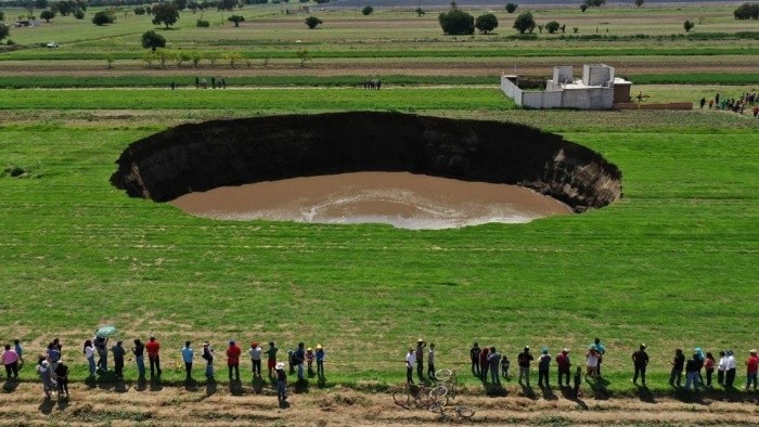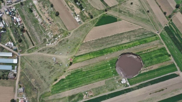 La sorpresa de los vecinos fue enorme al darse cuenta de que la razón del estrepitoso sonido era que la tierra se estaba hundiendo, literalmente.Desde entonces hasta ahora, lo que comenzó como un agujero de 5 metros de diámetro se convirtió en un socavón enorme de 80 metros, con una profundidad de 20.Su tamaño sigue aumentando rápidamente con las horas y amenaza con "tragarse" a una casa cercana que ya fue evacuada por las autoridades.Esta no es la primera vez que ocurre algo así en México o en el mundo.En los últimos años, de hecho, ha habido una serie de eventos de este tipo que incluso han terminado con la muerte de algunas personas pues se han formado en carreteras u otras vías de acceso público.Pero ¿cómo se explica la aparición de un socavón tan grande?Normalmente, estos agujeros se originan luego de que la tierra colapsa por variaciones en la humedad.Según Beatriz Manrique, secretaria de Medio Ambiente de Puebla, en este caso específico de Puebla se manejan dos variables."Creemos que puede ser una combinación de dos factores: el reblandecimiento del campo, toda la zona estaba siendo cultivada, así como la extracción de agua subterránea, que ablanda el subsuelo", señaló.Algunos expertos han dicho que su aparición puede deberse a la sobreexplotación de los acuíferos de la zona.La Coordinación General de Protección Civil Estatal y la Comisión Nacional del Agua (Conagua) de México llevarán a cabo una investigación sobre lo ocurrido que puede tardar hasta 30 días.Mientras, los vecinos continúan expectantes y mirando de cerca hasta qué punto puede seguir creciendo este tremendo socavón.***Ahora puedes recibir notificaciones de BBC Mundo. Descarga la nueva versión de nuestra app y actívalas para no perderte nuestro mejor contenido.