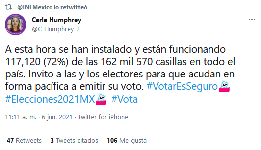 El Consejo General del INE dio a conocer que hasta el momento, el 72% de las casillas han sido instaladas en todo el país.Se tiene el reporte, dijo el secretario ejecutivo, Edmundo Jacobo, que nueve casillas no fueron instaladas por actos de inseguridad en Oaxaca, Zacatecas y Tlaxcala.Además, dijo, en Nayarit se hace el último esfuerzo por tratar de instalar 19 de las 20 casillas que se prevé su instalación en La Yesca.El representante de Morena ante el INE, Sergio Gutiérrez, denunció que en Veracruz y San Luis Potosí, tiene reporte que no se han podido instalar casillas.Además, reportó que a los representantes de Morena no les permiten el acceso a las casillas.El PT reportó también que no se permite el acceso a casillas a los representantes de partido, si acaso solamente a uno.El Partido Verde indicó que, según sus reportes, en San Luis Potosí hay problemas para instalar casillas.Edmundo Jacobo detalló que de 162 mil 570 casillas se habían instalado hasta las 11: 00 hora del centro, 117 mil 120 casillas.GC