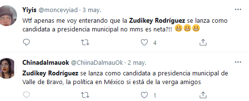 La ex participante de “Exatlón” y ex atleta, Zudikey Rodríguez anunció que buscará la alcaldía del municipio de Valle de Bravo, en el Estado de México.A primera hora del 30 de abril, y acompañada de su esposo, el ex futbolista, Patricio Araujo, Zudikey dio inicio a su campaña con una transmisión en vivo a través de Facebook, y desde entonces ha estado compartiendo imágenes de los recorridos que ha realizado en todo el municipio.“Me siento agradecida y fortalecida por el apoyo de las mujeres, los hombres, los jóvenes y los adultos mayores con quienes escribiremos un nuevo capítulo en la vida de Valle de Bravo”, escribió en Facebook tras el inicio de su campaña.Zudikey Rodríguez está representando a la coalición “Va por México”, conformada por el Partido Revolucionario Institucional (PRI), el Partido de la Revolución Democrática (PRD) y el Partido Acción Nacional (PAN).Por su parte, Pato Araujo ha expresado su apoyo incondicional a Zudikey, a quien conoció durante su participación en la segunda edición de "Exatlón México".Los usuarios de redes sociales no se tomaron tan bien este anuncio, pues para muchos, esto fue algo "decepcionante". GC