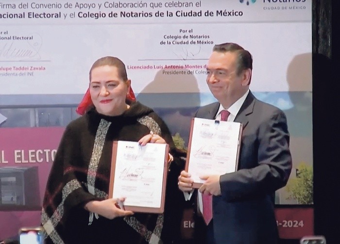 El precandidato de Movimiento Ciudadano a la presidencia de México, Samuel García, prometió defender la Denominación de Origen de la industria tequilera, la piratería y bajar los impuestos.También se manifestó respecto al tema en tendencia en el que señalan que al ex presidente de México, Vicente Fox, le cancelaron su cuenta de “X” y lamentó que el ex mandatario y Claudio X. González hayan difundido un video falso en el que demuestran el miedo que le tienen.Durante la gira que realizó por los municipios de Arenal y Tequila, el gobernador con licencia, aseguró que de llegar a la presidencia realizará acciones en favor de la agroindustria.Durante su discurso realizado en el Castillo del Tequila, Samuel García sostuvo que el tequila es lo más representativo de Jalisco y de México en el mundo.Por otra parte, manifestó su sentir respecto a la polémica generada por el comentario despectivo de Vicente Fox sobre Mariana Rodríguez, pues señaló su agradecimiento a Elon Musk, dueño de la red social “X”, por supuestamente eliminar la cuenta. “Qué bueno que ya mi compadre Musk se la quitó porque le daba pena ajena a México ese señor”.Respecto al audio aclaró que es falso, se hizo viral y fue una broma de una persona en la Ciudad de México al que lo dejaron plantado: “Que Claudio X. González, Fox y toda esa gente y sus bots hayan difundido esa conversación habla del miedo que nos tienen”.La noche de ayer informó que reasumió sus funciones como gobernador en Nuevo León y volverá a separarse del cargo el viernes, una vez que Javier Navarro, secretario General de su Gobierno, asuma el cargo para que Samuel pueda proseguir con la precampaña. Ayer Claudia Sheinbaum Pardo, virtual candidata presidencial de Morena, visitó Palacio Nacional, por lo que la precandidata presidencial de la alianza opositora, Xóchitl Gálvez arremetió nuevamente contra la ex jefa de Gobierno de la Ciudad de México.Al ser entrevistada a su llegada a la Universidad Anáhuac, para sostener un encuentro con la comunidad de esa institución, la aspirante de la coalición Fuerza y Corazón por México aseguró que Sheinbaum fue a Palacio Nacional a recibir instrucciones.“No la disimulan, ella es incapaz de tomar una decisión por sí misma y le tienen que dar línea, como le dieron línea de que no fuera a la FIL, seguramente ya le dieron línea de qué hacer, es la verdad”, señaló Gálvez Ruiz.A las 12:03 horas Sheinbaum fue captado el automóvil de la ex jefa de Gobierno de la Ciudad de México; a ella se le vio dentro del vehículo al salir del estacionamiento del recinto histórico donde reside el Presidente Andrés Manuel López Obrador, esto a sólo 24 horas después de haber presentado su equipo de campaña ante los medios de comunicación.Xóchitl Gálvez reprochó que AMLO pretenda incidir en las elecciones presidenciales de junio próximo. “Claro que no contempla ningún principio de imparcialidad, el Presidente me ha atacado. Entonces, la verdad de las cosas es que el Presidente va a seguir incidiendo en la elección con todo”, remarcó tras la visita de su oponente al recinto. La precandidata presidencial de la Coalición Fuerza y Corazón por México, Xóchitl Gálvez Ruiz, designó a la senadora Kenia López Rabadán como jefa de oficina de su precampaña.La vicecoordinadora de la bancada del PAN en el Senado informó que hoy presentará su solicitud de licencia para separarse del cargo.López Rabadán tiene experiencia electoral de más de 25 años. Ha sido legisladora local y federal en diversas ocasiones. Es abogada con maestría en Gobierno y Políticas Públicas; doctora en Administración Pública, ambas con Mención Honorífica. Mario Delgado señaló que no debe haber censura en redes sociales, por lo que espera que regrese la cuenta de “X” de Vicente Fox.En conferencia de prensa, subrayó que están en contra de la violencia contra las mujeres y otros comentarios, “condenamos la violencia contra las mujeres y para variar fue indebido lo que hizo este señor, pero también decirles que no estamos de acuerdo con la censura. Hay que sancionarlo por la violencia que ejerce en contra de todas las mujeres, pero estamos en contra de que se le censure. Ojalá le regresen los de Twitter su cuenta a Vicente Fox”. Para dotar de certidumbre jurídica y garantizar la legitimación y certeza de cada una de las etapas del proceso electoral de 2024, el Instituto Nacional Electoral (INE) firmó un convenio de colaboración con el Colegio de Notarios de la Ciudad de México y el Consejo Nacional de Notariado.El INE indicó que la participación de notarios en los procesos electorales ofrece confianza la ciudadanía, ya que ha evitado casos de robo de identidad, usurpación, o delitos durante la experiencia en comicios anteriores, así como dar fe de los hechos acontecidos. CT