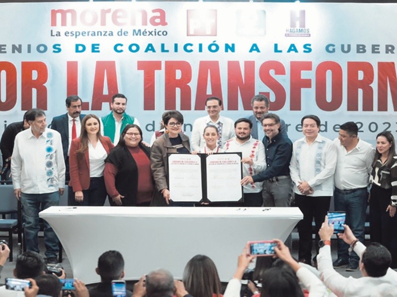 Las presidentas estatales del PRI, PAN y PRD, Laura Haro, Diana González y Natalia Juárez, respectivamente, firmaron ayer el convenio de coalición del Frente X Jalisco ante el Instituto Electoral y de Participación Ciudadana (IEPC) de Jalisco.En dicho evento, las lideresas estuvieron acompañadas de unos 200 simpatizantes de las tres fuerzas políticas, principalmente del PRI. La más vitoreada fue Laura Haro. Ella anunció que la candidatura será para una mujer y aseguró que el acuerdo tiene poder para competir en los próximos comicios.Más tarde, Marko Cortés, dirigente nacional del PAN, confirmó el anuncio y agregó que Diana González, quien encabeza al albiazul en la Entidad, analizará con Haro y Juárez a los mejores perfiles.González precisó que a más tardar en 15 días se tendrá el nombre de la abanderada.“En Jalisco ya está definido: se hizo la evaluación de los nueve Estados donde habrá elección de gubernatura y se decidió qué será una mujer”, dijo.Explicó que la designación se llevará a cabo a través de una encuesta. El proceso será responsabilidad del PAN. La política detalló que se abrirá la convocatoria para todas las mujeres que deseen postularse, sin importar su militancia.El pasado 30 de octubre, el PRI anunció que realizará consultas ciudadanas y foros llamados “El Jalisco que queremos” para conocer las necesidades de la población. El objetivo es visitar al menos 100 mil familias de todos los municipios del Estado para conocer sus preocupaciones en temas como salud, seguridad, economía y educación.“Estaremos casa por casa levantando un sondeo, escuchando a la ciudadanía, a los vecinos para saber cuál es el Jalisco que queremos”, comentó Haro. El diputado federal de Movimiento Ciudadano por Jalisco, Salvador Caro, ha fundamentado su trabajo legislativo en la Cámara de Diputados desde el año 2021 en materia de seguridad y justicia, al considerarlas una de las agendas pendientes del Gobierno federal en turno.El legislador federal, con previa experiencia como diputado local en Jalisco, destacó que 13 de las 37 iniciativas que ha presentado en la actual legislatura son en materia de seguridad, justicia y combate a la impunidad; entre ellas, resaltó una reforma para que los homicidios cometidos por grupos de la delincuencia organizada sean considerados como delitos graves.“He presentado iniciativas como una reforma a la Ley de Seguridad Nacional y al Código Penal Federal para que, en el caso de los homicidios cometidos por grupos criminales, todos los que hayan cooperado, aun de la mínima manera, se vayan a la cárcel por delito grave”, explicó Caro.“Es muy lamentable que en la Cámara de Diputados el tema de procuración e impartición de justicia no se haya tocado a lo largo de más de dos años, a pesar de que se han presentado iniciativas”.Respecto al proyecto de presupuesto de egresos que es discutido en la cámara baja, criticó varios puntos, entre ellos, el alto endeudamiento que propone el Gobierno Federal que alcanza 1.9 billones de pesos.“Es contrario a la Constitución porque su nivel de endeudamiento que alcanza 1.9 billones de pesos, rebasa lo que establece la Constitución como tope para poder presupuestarse”.El segundo punto es la falta de apoyo e inversión para la reconstrucción de Acapulco tras el paso del huracán “Otis” que dejó pérdidas por miles de millones de pesos y se requieren al menos 300 mil MDP para reactivar Acapulco.El tercer rubro, señaló el diputado, no incluye temas primordiales para la población como la falta de inversión en la capacitación de policías.Salvador Caro garantiza que será el próximo alcalde de Guadalajara, al asegurar que cuenta con la suficiente experiencia para hacer frente a los retos que enfrenta la capital de Jalisco.“Yo voy a ser el próximo alcalde de Guadalajara porque tengo una plataforma personal y tengo la experiencia suficiente para enfrentar los retos que tiene la ciudad en este momento. Vivir sin miedo y tengo claro que es ahora o nunca, de lo contrario, nuestra ciudad va a seguir contaminándose por la delincuencia”.Dijo que no tiene algún plan B, es decir, que no cuenta con otra meta que no ser el próximo alcalde tapatío, aunque aclaró que no tiene algún problema con otros compañeros del partido. Mario Delgado señaló que ante arranque del periodo de precampañas en Ciudad de México, Yucatán y Jalisco este 5 de noviembre, el partido iniciará su precampaña a partir del 11 de noviembre una vez que estén definidos las y los precandidatos para las nueve entidades que renuevan Gobierno en 2024.Por medio de un comunicado, Delgado Carrillo recordó que la Comisión Nacional de Elecciones de Morena solicitó a todas y todos los aspirantes a las coordinaciones de Defensa de la Transformación suspender de cualquier tipo de actividad pública o privada que tenga por objetivo darse a conocer o promocionarse.Los aspirantes de Morena deben suspender cualquier tipo de actividad pública o privada que puedan ser considerados actos anticipados de precampaña. El presidente del PAN, Marko Cortés Mendoza, acusó a Movimiento Ciudadano (MC) de pactar con Morena y hacerle el trabajo sucio, al impugnar el acuerdo del Instituto Nacional Electoral (INE) que obliga a los partidos a postular a cinco mujeres y cuatro hombres en las elecciones estatales del próximo año, luego de confirmar que el Frente Amplio por México (FAM) tendrá a una mujer como candidata a la gubernatura de Jalisco.El líder panista afirmó que echar abajo el acuerdo del INE como quiere MC beneficiaría a Morena, que está metido en un problema por el tema de la paridad de género.Marko Cortés exhortó a panistas, priistas y perredistas a proponer a mujeres destacadas que aspiren a la candidatura a la gubernatura de Jalisco, estado al que dijo, le urge un "cambio de timón". Claudia Sheinbaum arremetió por segundo día consecutivo contra los ex Presidentes Ernest