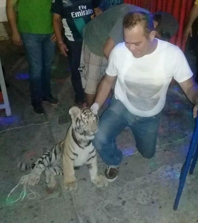 Un empresario oaxaqueño paseó la madrugada de este viernes su mascota, un cachorro de tigre de bengala, en las calles de Salina Cruz, municipio de la región del Istmo de Tehuantepec, Oaxaca.Las imágenes difundidas vía redes sociales causaron la indignación de los usuarios, quienes pidieron la pronta acción de las autoridades ambientales. Sin embargo, el propietario del ejemplar, Carlos "N", explicó que cuenta con la autorización correspondiente emitida por la Procuraduría Federal de Protección al Ambiente (Profepa), que acredita la propiedad y el permiso para tener el animal.En entrevista con El Universal señaló que desde que adquirió a la felina de cuatro meses de edad, hace aproximadamente un mes, en Tijuana, Baja California, ha procurado las medidas de manutención y cuidado a fin de otorgar una vida digna a su mascota.Sobre la convivencia con el tigre, indicó que éste habita en las condiciones necesarias y recibe la atención médica precisa para su bienestar.Desde la publicación de las fotografías que dieron la vuelta en las redes sociales, donde se le ve paseando con su mascota, relató, ha recibido hostigamiento y amenazas constantes."Lo compré porque amo a los animales", insistió y resaltó que hasta el momento no ha sucedido ninguna agresión, pues vive en un ambiente pacífico y con constante convivencia con las personas.No obstante, cuando traía su mascota de Tijuana a Oaxaca, en la capital oaxaqueña fue detenido por poseer el cachorro salvaje, durante 48 horas, injustificadamente, dijo. "Yo soy oaxaqueño y me da tristeza el abuso constante que cometen las autoridades", declaró.Incluso dijo que lo extorsionaron al pedirle dinero para dejarlo en libertad; sin embargo, tras mostrar que tenía la documentación del tigre en regla, fue liberado, sin recibir disculpa alguna. Insistió en que el animal "come mejor que yo" y cuenta con las condiciones de vida necesarias, que requiere la Profepa.LS