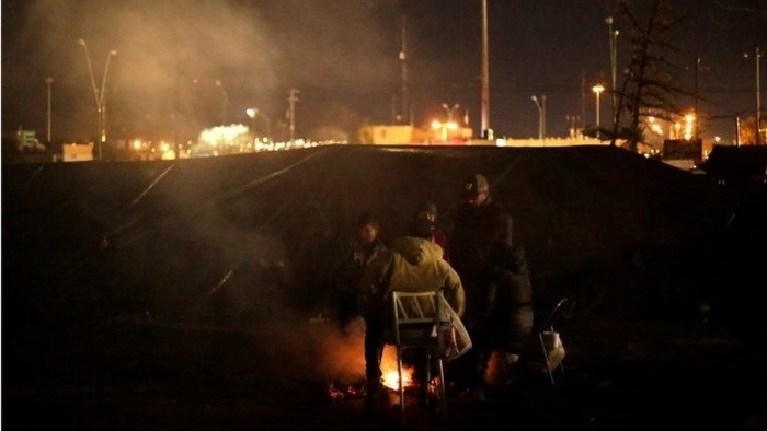 Temperaturas heladas han golpeado a la ciudad mexicana de Ciudad Juárez desde el miércoles, lo que ha puesto en riesgo a cientos de migrantes que montaron precarios campamentos cerca de los puentes que conectan a la localidad con la frontera de Estados Unidos.Alrededor de 550 personas que están esperando para solicitar asilo en EE.UU. están durmiendo en carpas en las calles cercanas a los puntos de cruce fronterizos, según información del gobierno local.Casi la mitad de esos migrantes son niños menores de 12 años.La mayoría son mexicanos que huyen de la pobreza y de los altos niveles de criminalidad.Las temperaturas bajo cero han afectado la región esta semana y se extenderán durante el fin de semana, según las predicciones del tiempo.Funcionarios del gobierno mexicano empezaron a trasladar a grupos que estaban viviendo en las calles a refugios como El Buen Samaritano.Pero muchos de los migrantes prefirieron quedarse por temor a perder su turno en la fila de los que cruzan la frontera para pedir asilo.La agencia de Aduanas y Protección Fronteriza estadounidense (CBP, por sus siglas en inglés) impuso estrictos límites en cuanto al número de personas al que permite solicitar asilo al día en los puertos de entrada fronterizos, en un proceso que en inglés recibe el nombre informal de metering.Esto genera una acumulación de casos y un retraso en el lado mexicano de la frontera, donde la espera puede durar entre días y meses.Una lista de espera del gobierno mexicano en Ciudad Juárez acumula unos 1.200 nombres en la actualidad.Funcionarios dijeron que están buscando reunirse con su contraparte en EE.UU. para crear un sistema en el que aquellos que estén próximos a ser llamados en la lista sean localizados y llevados a la frontera sin tener que acampar cerca de los puentes.El número de personas en los campamentos ha decrecido desde el pasado agosto de 3.500 a 550. Muchos de los que han abandonado la ciudad argumentaron sentir miedo de exponer a sus hijos a temperaturas invernales.Todas las imágenes están sujetas a derechos de autor.Ahora puedes recibir notificaciones de BBC Mundo. Descarga la nueva versión de nuestra app y actívalas para no perderte nuestro mejor contenido.JM