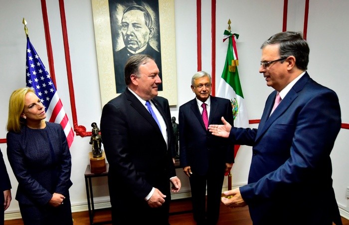 Marcelo Ebrard informó la tarde de hoy viernes que el equipo de transición del virtual presidente electo, Andrés Manuel López Obrador, entregó a la delegación de Estados Unidos, encabezada por el secretario de Estado, Mike Pompeo, una propuesta de bases de entendimiento para la relación bilateral.Ebrard señaló que esperarán a que el presidente estadounidense, Donald Trump, reciba el documento para "darlo a conocer al pueblo mexicano", y detalló que estarán a la espera de la respuesta del mandatario.El próximo titular de la Secretaría de Relaciones Exteriores (SRE) destacó que la reunión con la delegación de EU "fue excelente. Fue un diálogo bastante franco, respetuoso, cordial", y señaló que aunque "todavía no abordamos el detalle de muchos temas, es una primera conversación exitosa y podemos tener un compromiso responsable de que México va a encontrar bases de entendimiento para los próximos años con el gobierno de Estados Unidos".La propuesta entregada a los representantes de la administración Trump aborda cuatro temas principales: comercio y renegociación del Tratado de Libre Comercio de América del Norte (TLCAN), desarrollo, migración y seguridad.JB