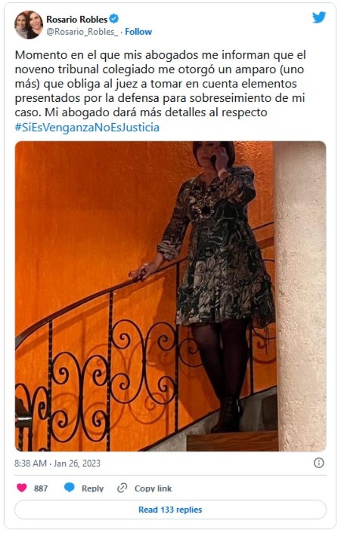 Un Tribunal Colegiado amparó a la exsecretaria de Desarrollo Social, Rosario Robles Berlanga, contra una resolución judicial en la que le negaron el sobreseimiento de la acusación por el delito de omisión en el caso de la Estafa Maestra.Los magistrados del Noveno Tribunal Colegiado dejaron sin efecto lo dictado por un juez y le ordenaron emitir una nueva resolución de la solicitud de sobreseimiento, tomando en cuenta los planteamientos de los abogados de la exfuncionaria.Epigmenio Mendieta, abogado de Rosario Robles, interpuso un amparo para que un juez se pronunciara sobre cuál vía tendría que ser primero para resolver el caso, si la administrativa o la penal."Yo digo que tiene que ser la administrativa, porque así lo establece el artículo 109 de la Constitución", señaló el litigante.Sin embargo, el juez le respondió que no hace falta hacer el análisis porque ya hay una jurisprudencia que dice que la vía administrativa no riñe con la vía penal y que son vías independientes o autónomas, y que se pueden resolver ambas.Ante ello, Mendieta recurrió al Tribunal Colegiado bajo el argumento de que necesariamente se tiene que hacer un análisis de eso, en el caso concreto."Respecto a mi petición el juez fue omiso e incumplió una de las obligaciones que planteamos: la necesidad de hacer un control de constitucionalidad para derivar cuál de los dos preceptos establecidos resulta aplicable para el caso de la señora Rosario Robles", dijo."Uno está por vía administrativa en la Ley del Presupuesto Federal y el otro está en el Código Penal, establecen exactamente lo mismo. Lo que yo le digo al juez en aquella audiencia, es cuál de los dos preceptos es el que se le tiene que aplicar a Rosario y cuál es el que tiene principio de prelación. Significa cuál vía tiene que ser primero y yo digo que tiene que ser la administrativa", señaló.Consideró que el caso de la exfuncionaria en el sexenio de Enrique Peña Nieto debió abordarse por la vía administrativa, ya que no hubo afectación patrimonial. "En el caso de Rosario no hay contenido patrimonial, porque a ella la acusan de un delito de omisión, entonces yo creo que tenemos muchas posibilidades", refirió.De esta manera, el Noveno Tribunal Colegiado dejó sin efecto lo dictado por el juez y como consecuencia de ello deberá emitir una nueva en la que se tomen en cuenta todos los argumentos del abogado de la exfuncionaria y que resuelva bajo estos principios.JM