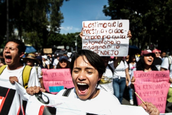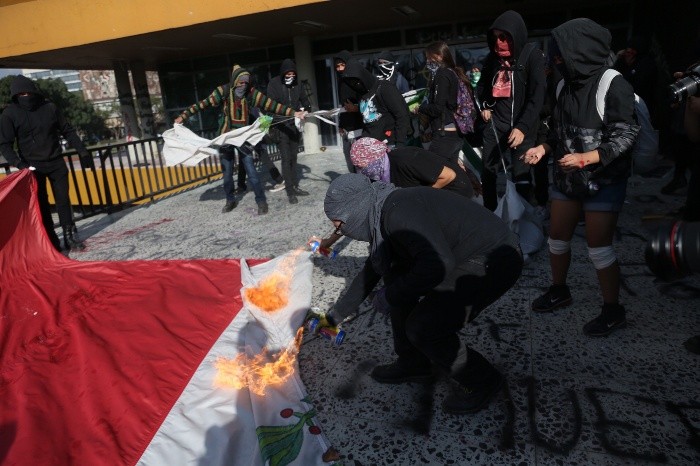 Estudiantes de la Universidad Nacional Autónoma de México (UNAM) marcharon este jueves por la Ciudad de México como protesta por los casos de acoso contra las mujeres acontecidos en la institución educativa.La marcha se inició en el Parque de la Bombilla hasta llegar a la explanada del edificio de rectoría del campus universitario.Según la Oficina de la Abogacía General de la UNAM, durante los tres últimos cursos lectivos se presentaron 921 quejas y denuncias por violencia de género en esa universidad.Las cifras oficiales aseguran que más de la mitad de las investigaciones iniciadas en 2019 en contra de los denunciados concluyeron con una sanción, pero ese número es insuficiente para estudiantes y activistas, ya que relatan que la violencia de género es continua en la UNAM.Las protestas estuvieron encabezadas por el Colectivo Activista Revolucionario y grupos feministas de la Facultad de Estudios Superiores (FES) Cuautitlán.Otras agrupaciones de alumnos publicaron en las redes sociales sus peticiones para solucionar el conflicto, incluyendo la renuncia de algunos profesores señalados por acoso por parte de estudiantes.Otro de los puntos de rechazo de los universitarios es la reciente reeleción hasta el 2023 del rector de la UNAM, Enrique Graue, al que acusan de inacción ante estos episodios.La dirección de la Universidad Autónoma emitió un comunicado en el que se definía como "respetuosa con la libertad de expresión de todas las ideas", pero pidió que la manifestación no alterara el orden público."La UNAM hace un exhorto para que las movilizaciones de alumnas y alumnos previstas para esta tarde hacia la Torre de Rectoría transcurran en calma y no se contaminen con la posible participación de provocadores profesionales", pedía la nota.La marcha arrancó con un centenar de personas.Hacia el final de la protesta, un grupo reducido de estudiantes, vestidos de negro y encapuchados, realizó pintas en la explanada de la rectoría de la UNAM y vandalizaron mobiliario diverso de la institución.Luego de la marcha a la Torre de Rectoría, jóvenes encapuchados rompieron vidrios y quemaron la Bandera que se encuentra en el asta de dicho sitio en Ciudad Universitaria.Posteriormente, los jóvenes sacaron algunos libros de la librería que se encuentra a un costado de Rectoría y prendieron fuego en ese lugar.Cuando el grupo que se manifestaba se retiró de la Rectoría, otros jóvenes y algunos trabajadores de la UNAM recogieron algunos libros y los regresaron a la librería.Con información de El UniversalJM