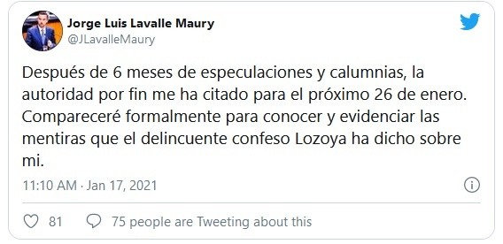 Alejandro Gertz Manero, fiscal general de la República, informó que habrá más imputados por el caso del exdirector de Petróleos Mexicanos (Pemex), Emilio Lozoya, y que el exsenador panista, Jorge Luis Lavalle Maury, es el primero de varios.En entrevista con Ciro Gómez Leyva, en Radio Fórmula, señaló que los nombres de los acusados se darán a conocer conforme se vayan judicializando las carpetas de investigación."Nosotros hemos tratado, hasta donde ha sido posible, en no convertir a la Fiscalía, que es autónoma, en un órgano que esté dedicado a litigar mediáticamente, pero si tenemos que resolverlo, lo vamos a hacer"."Tenemos que decir la verdad y la vamos a decir, en este caso específico conforme vayamos estableciendo la estructura y la solidez del caso, vamos a continuar con los demás. No los voy a descalificar", comentó.El exsenador panista Jorge Luis Lavalle Maury se convirtió en el primer político contra el que la Fiscalía General de la República (FGR) judicializó la carpeta de investigación iniciada por la denuncia que presentó el exdirector de Petróleos Mexicanos (Pemex), Emilio Lozoya.A través de su cuenta de Twitter, el exlegislador señaló que fue citado para el próximo 26 de enero. Fuentes judiciales confirmaron que deberá presentarse ante el juez de Control del Centro de Justicia Penal Federal del Reclusorio Norte."Después de seis meses de especulaciones y calumnias, la autoridad por fin me ha citado para el próximo 26 de enero. Compareceré formalmente para conocer y evidenciar las mentiras que el delincuente confeso Lozoya ha dicho sobre mí", señaló.JM